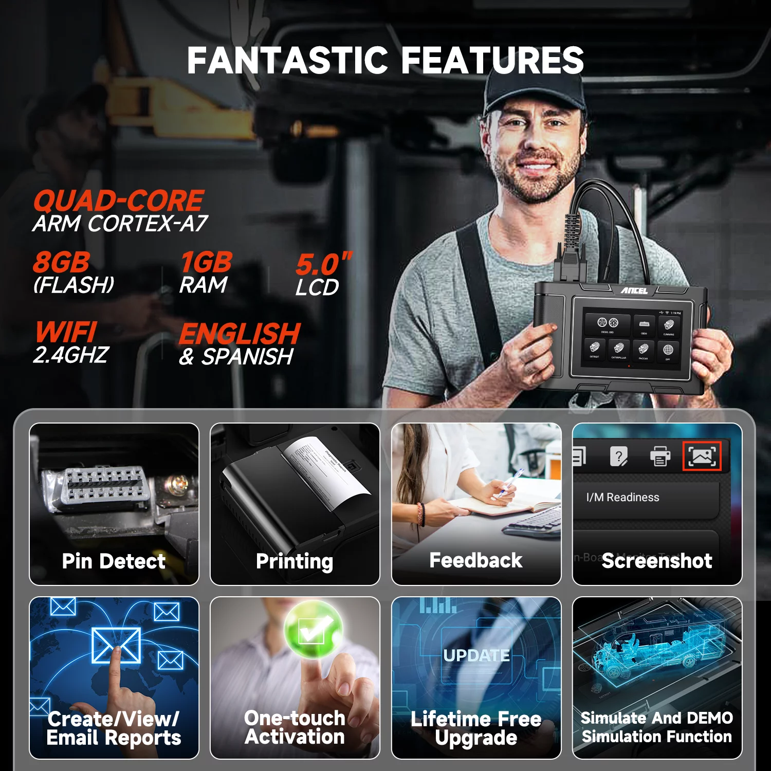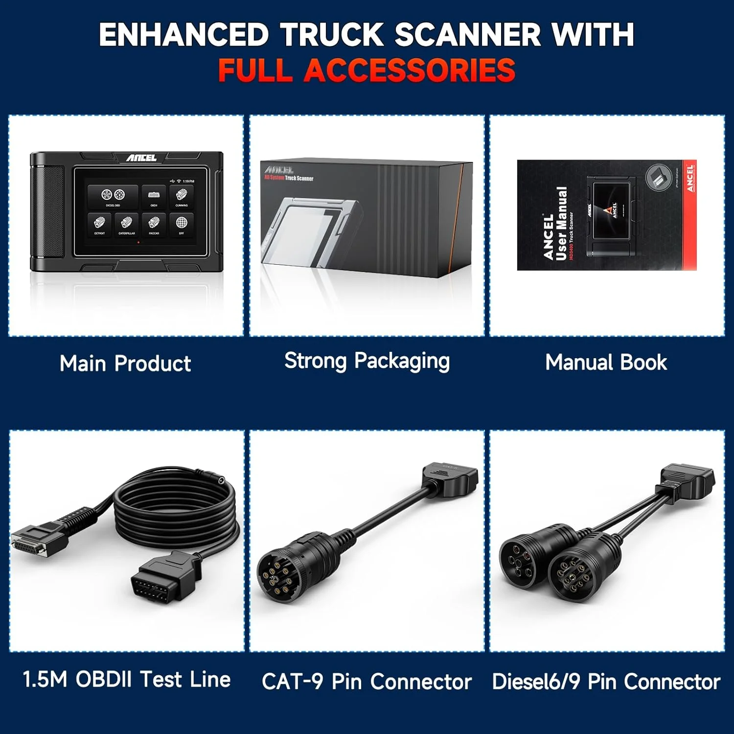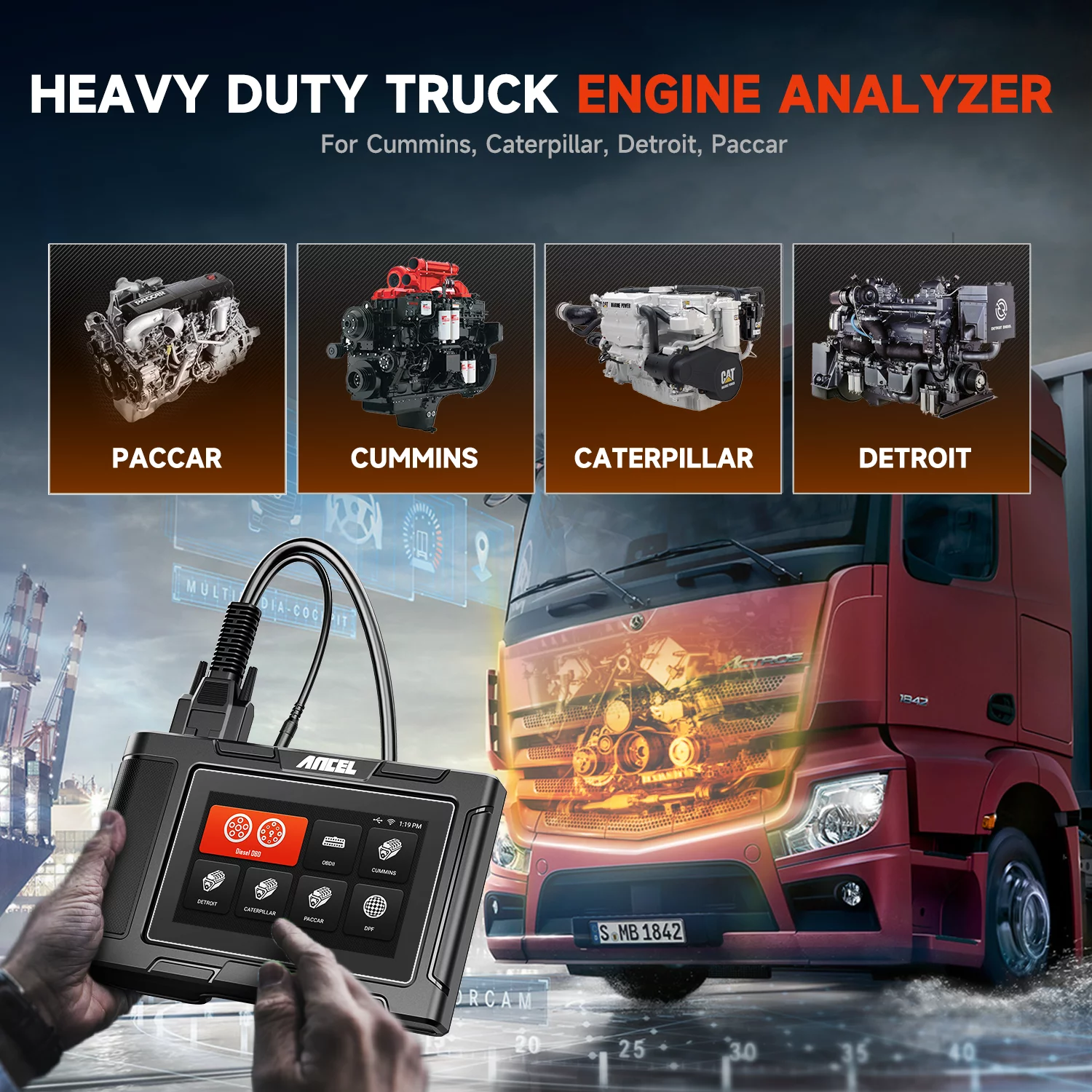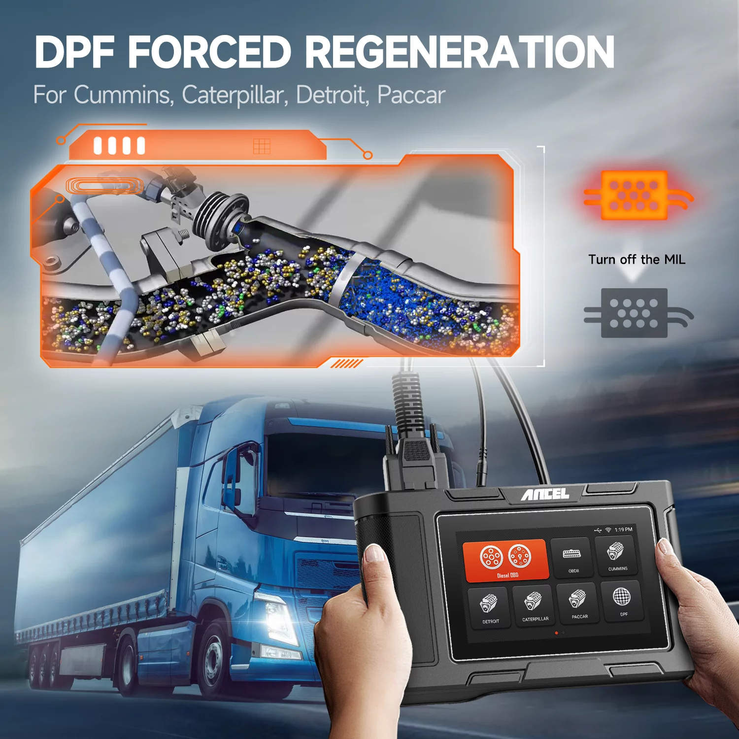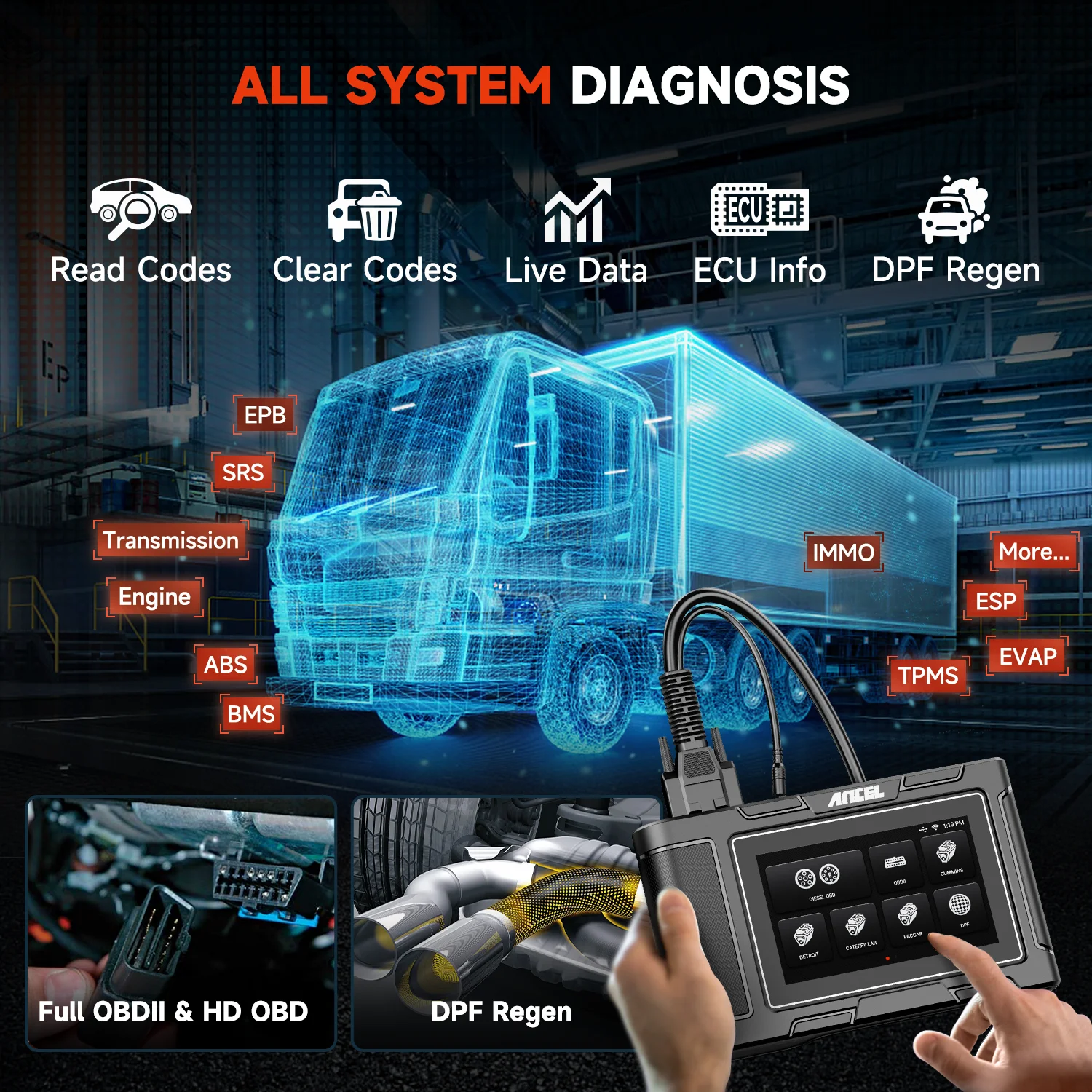 ANCEL HD3400 Diesel Truck Scanner Heavy Duty Truck Diagnostic Tool DPF Regen All Systems Scanner HD OBD Scanner Truck Code Reader for Cummins Engine,Freightliner,Peterbilt,Kenworth,Bobcat,Volvo,Mack