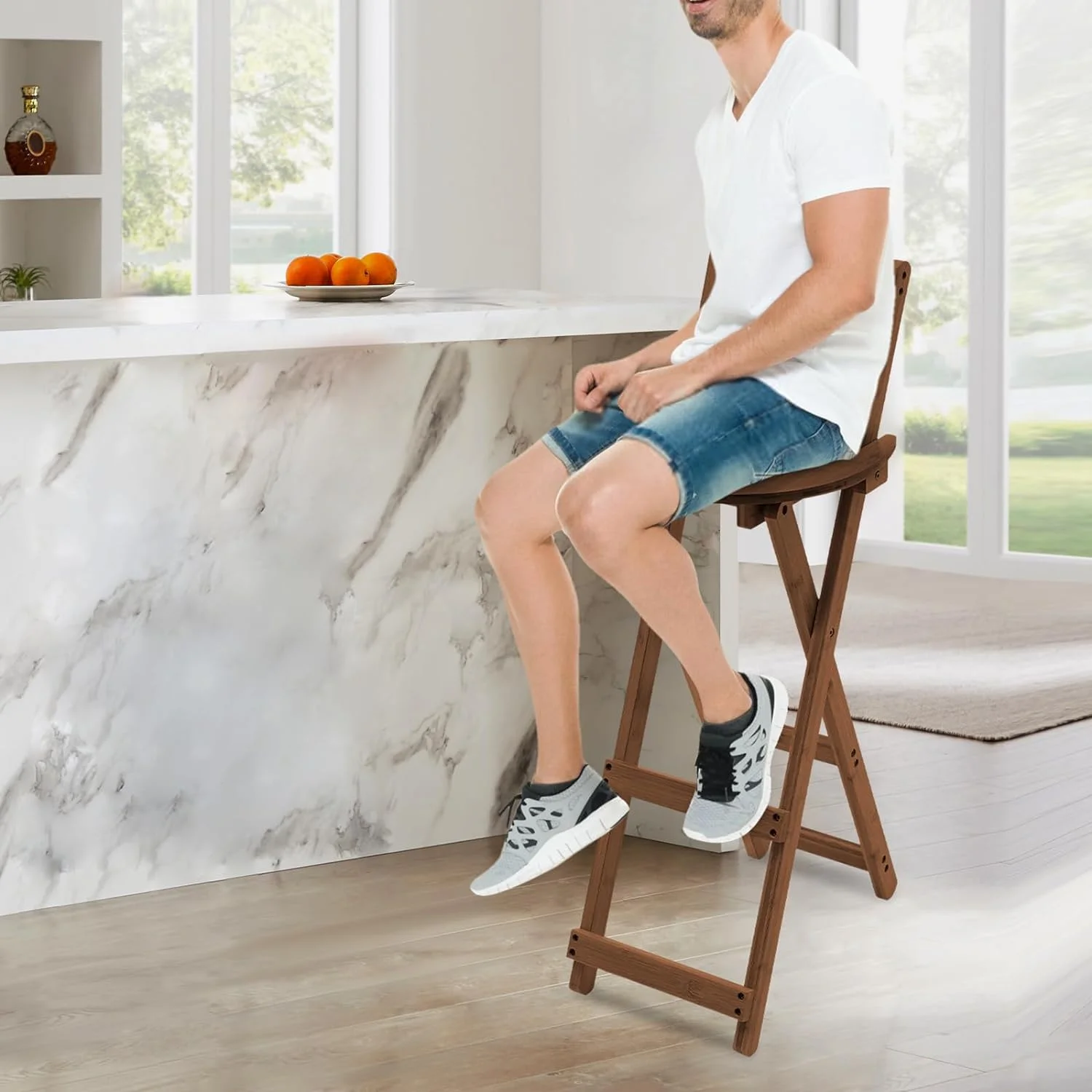 Tobias Designs Casa 34" Swivel Wood Extra Tall Bar Stool in Poet Desert Brown