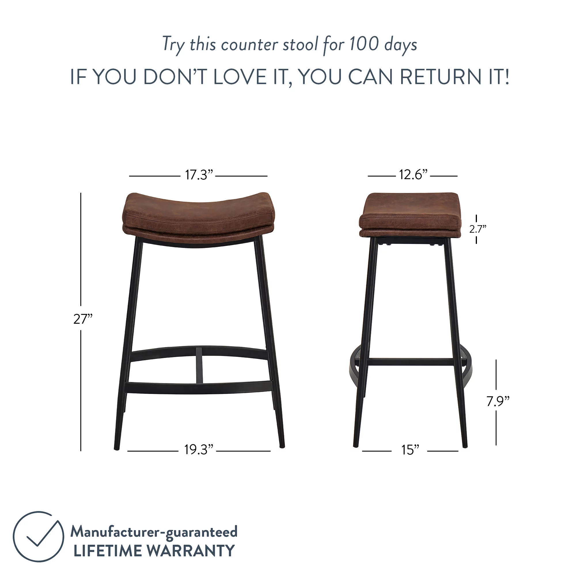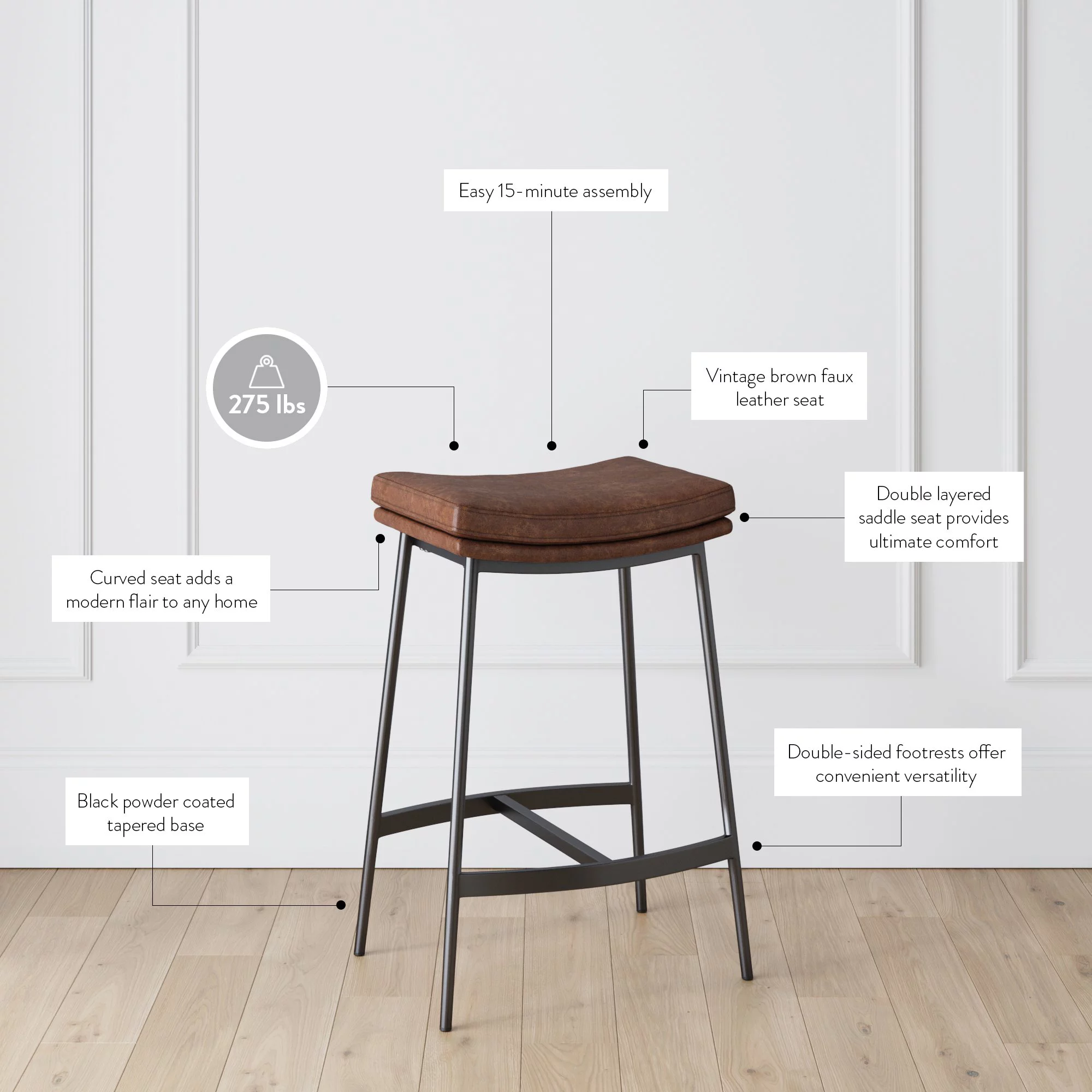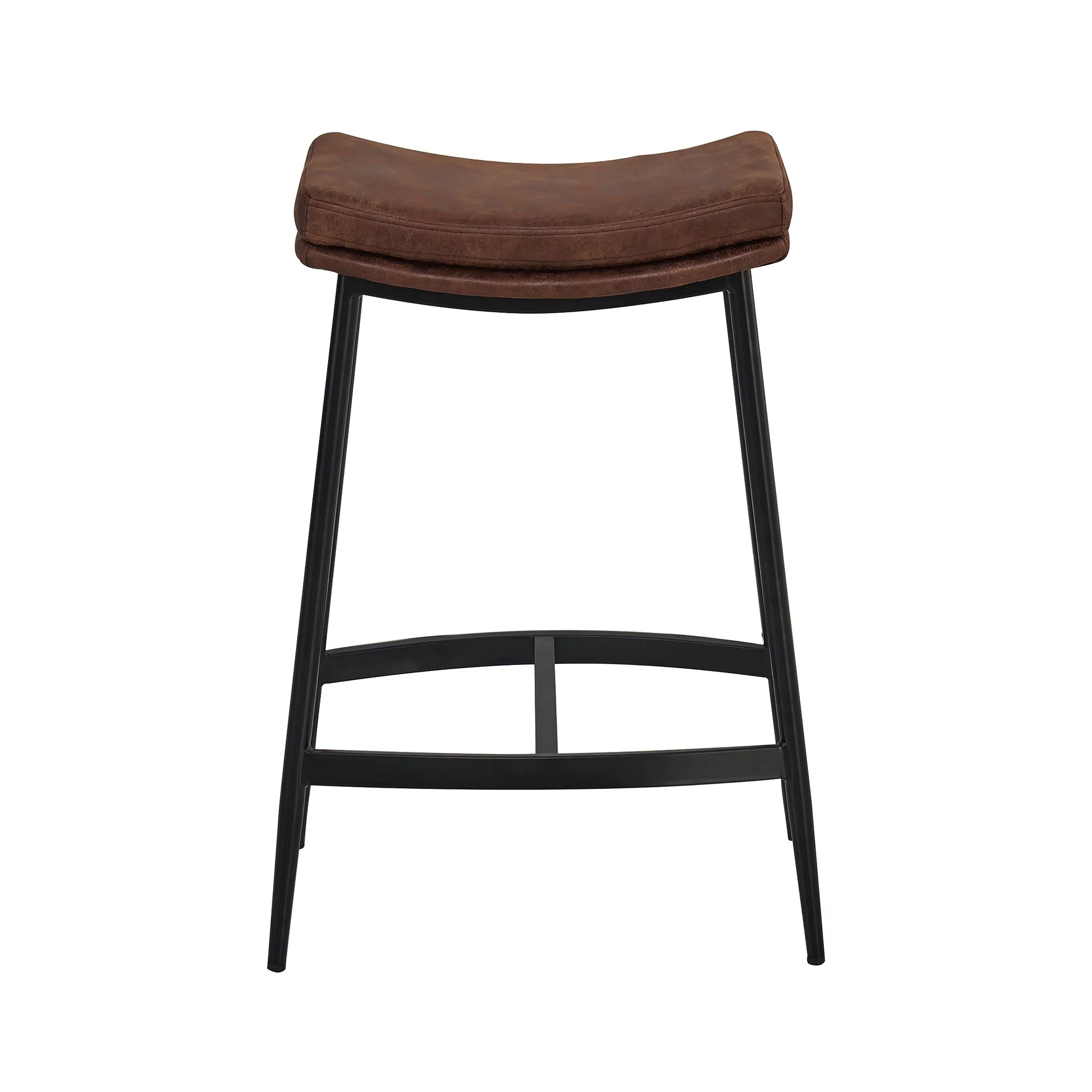 Nathan James Arlo Modern Backless Upholstered Kitchen Counter Bar Stool with Saddle Seat and Metal Base, Brown/ Matte Black