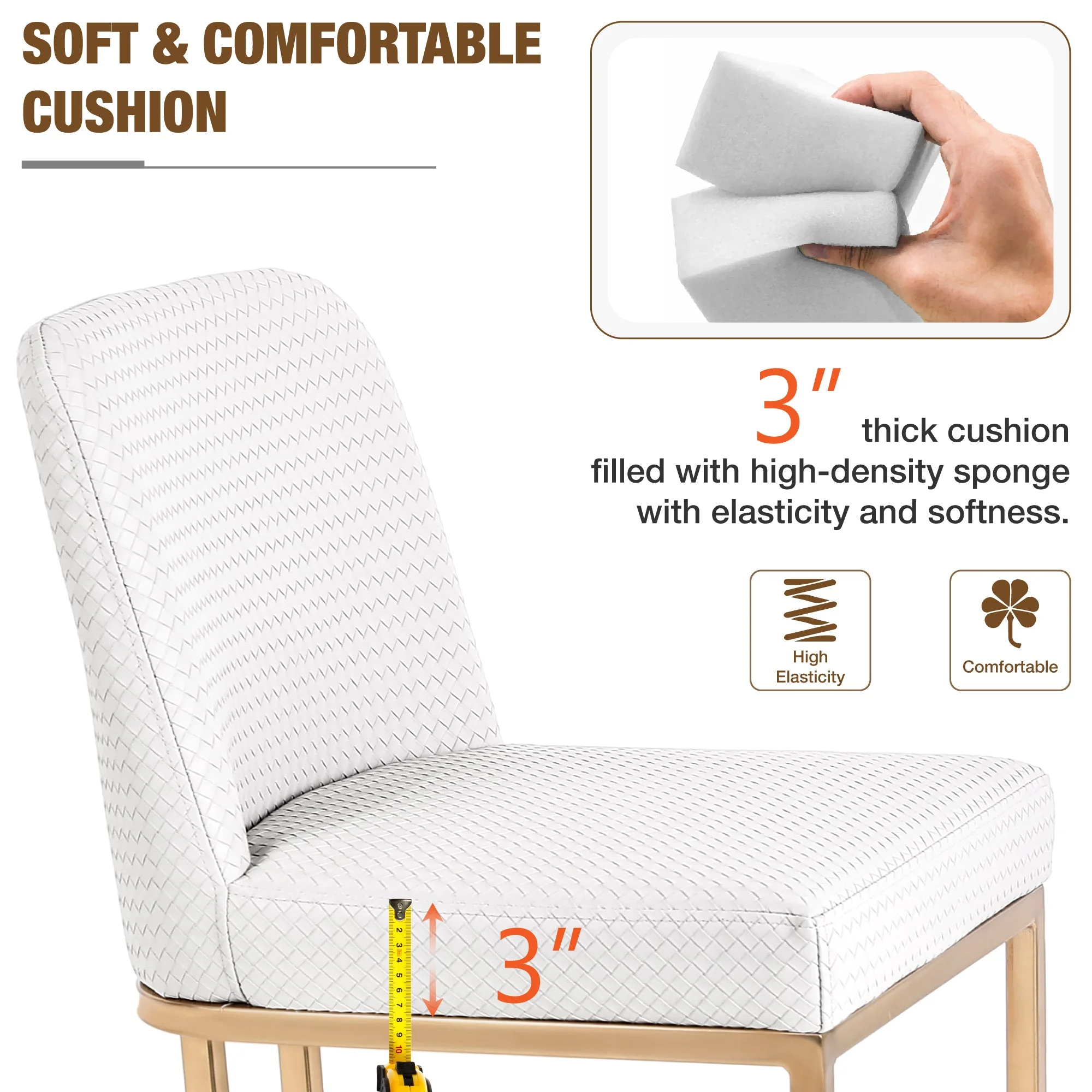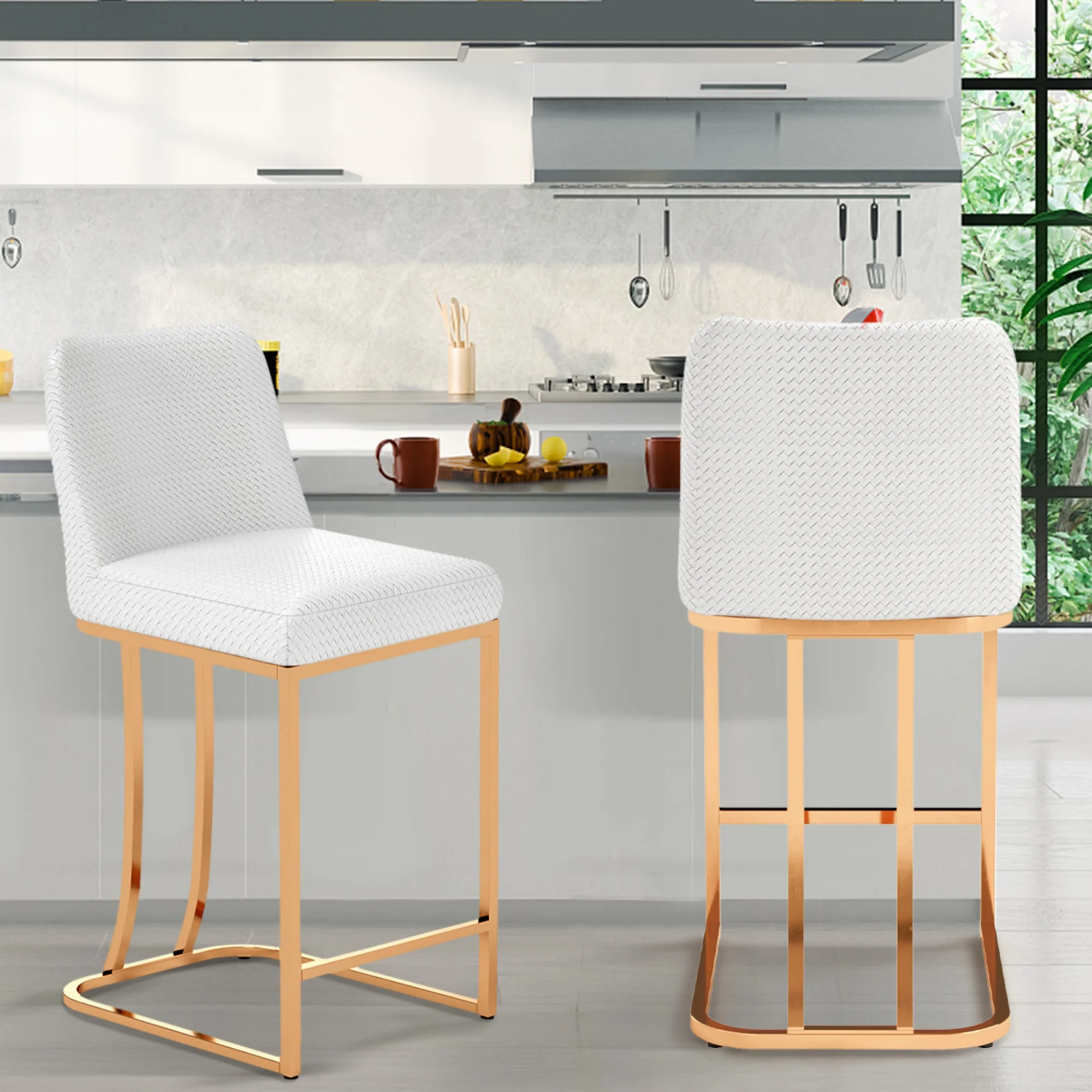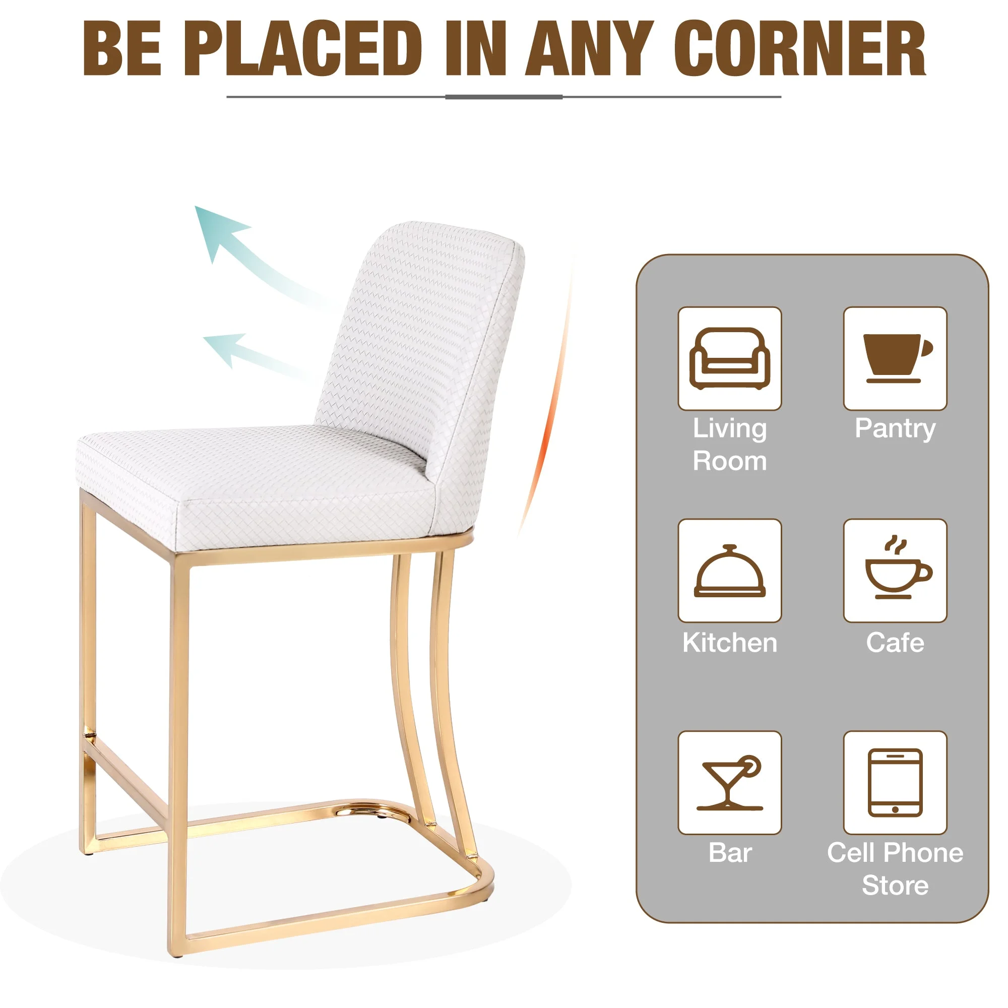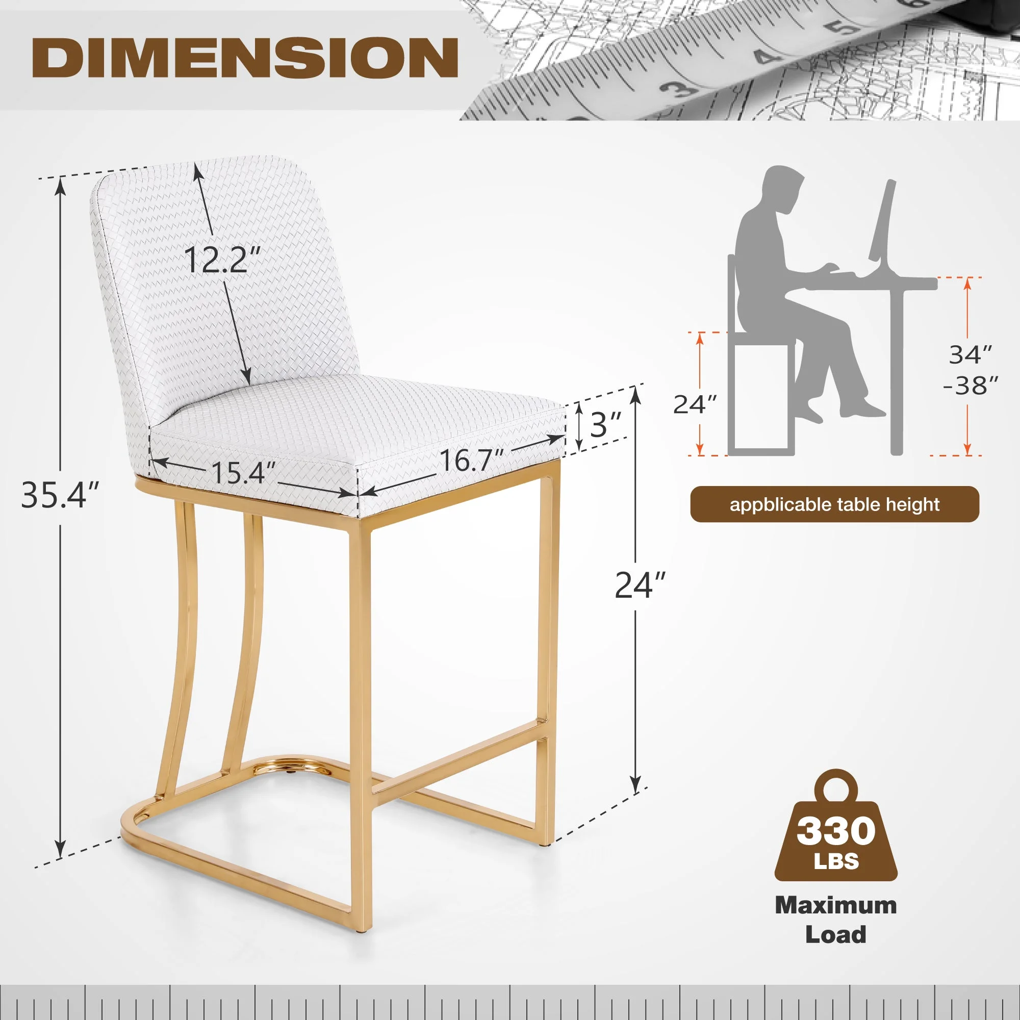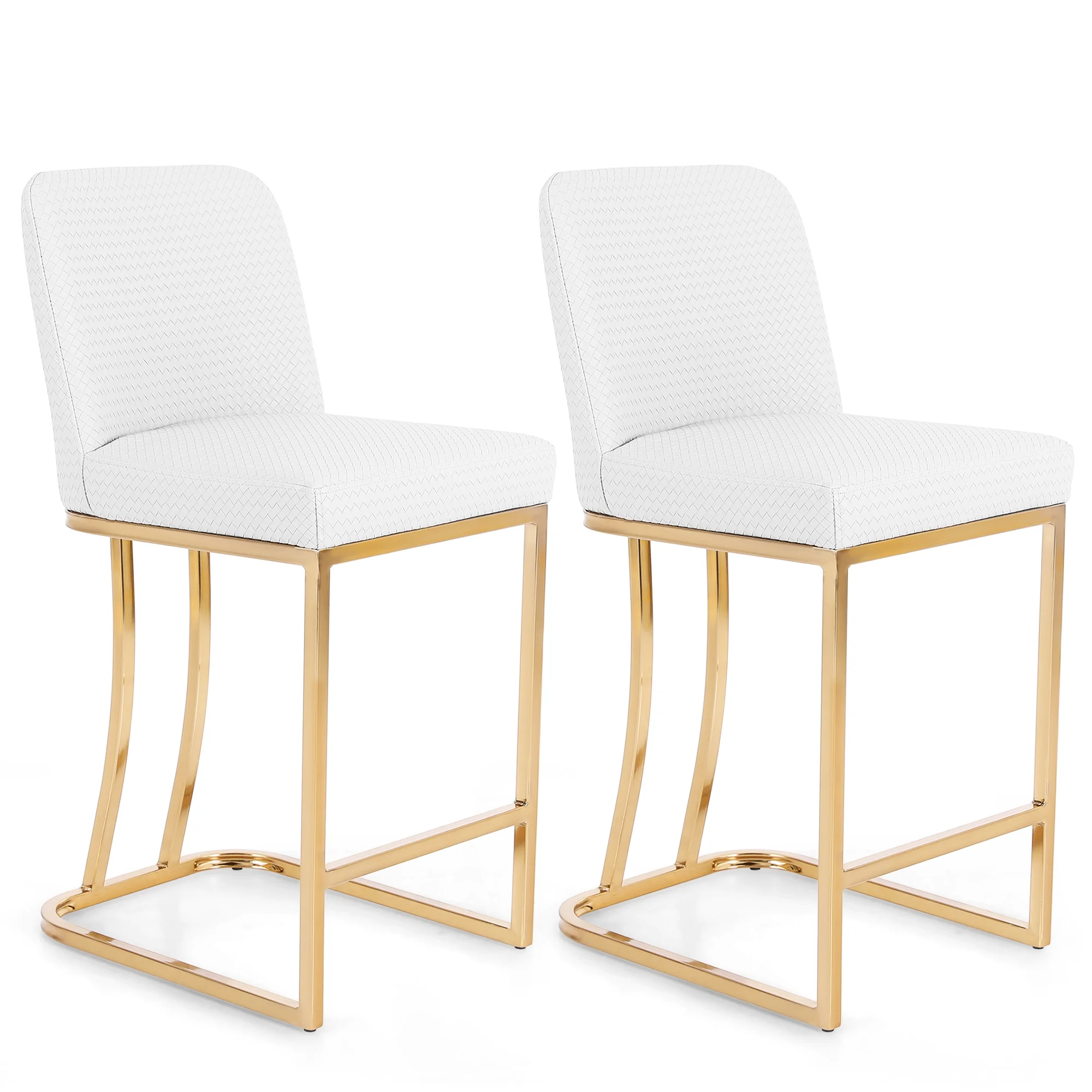 Summit Living 24 inch White & Gold Counter Bar Stools with Back Set of 2 for Kitchen Dining Faux Leather Barstools