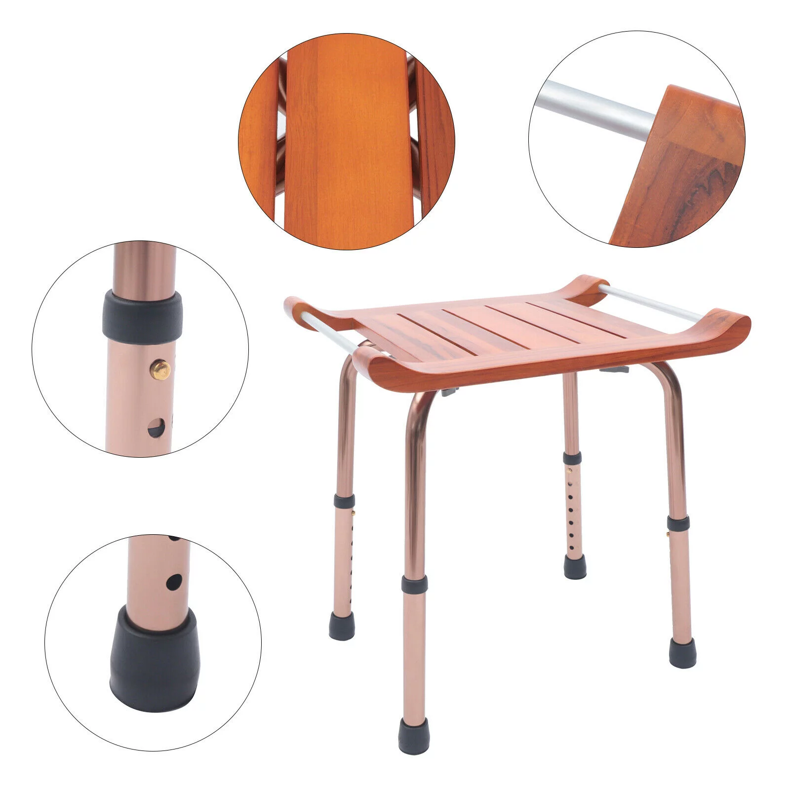 TFCFL Adjustable Teak Bath Bench Furniture Stool Seat Bathroom Shower Chair 300lbs