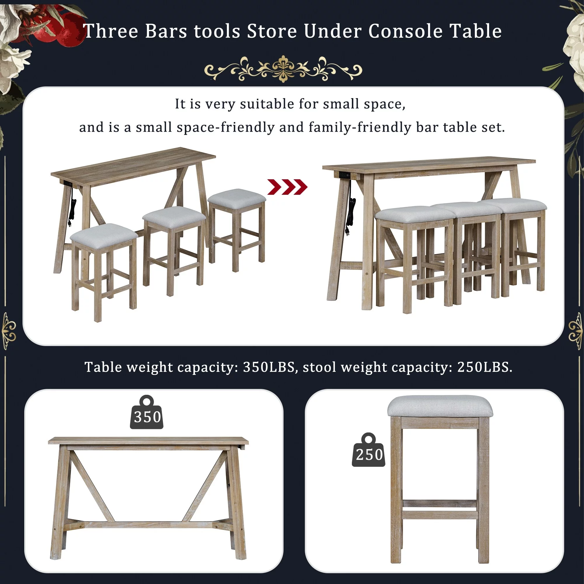 Distressed Multipurpose Kitchen Bar Table Set with Upholstered Stools Natural Wood Wash