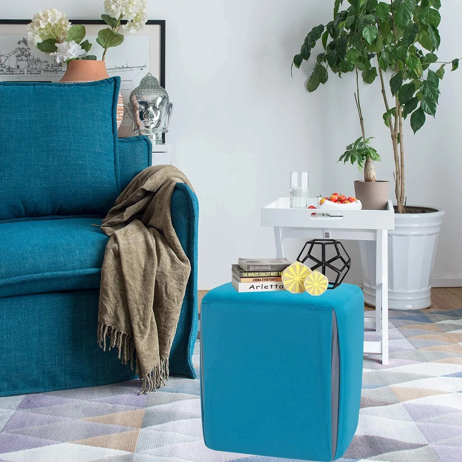 Small Ottoman Footrest Stool Velvet Seating Ottoman Upholstered Modern Vanity Stools For Bedroom Living Room (Blue)