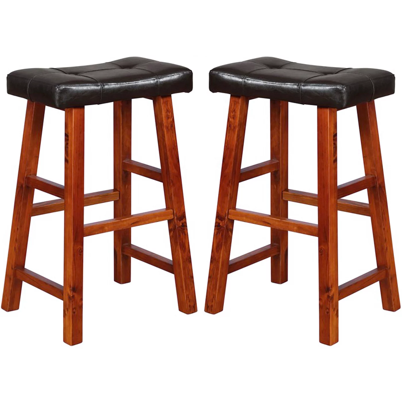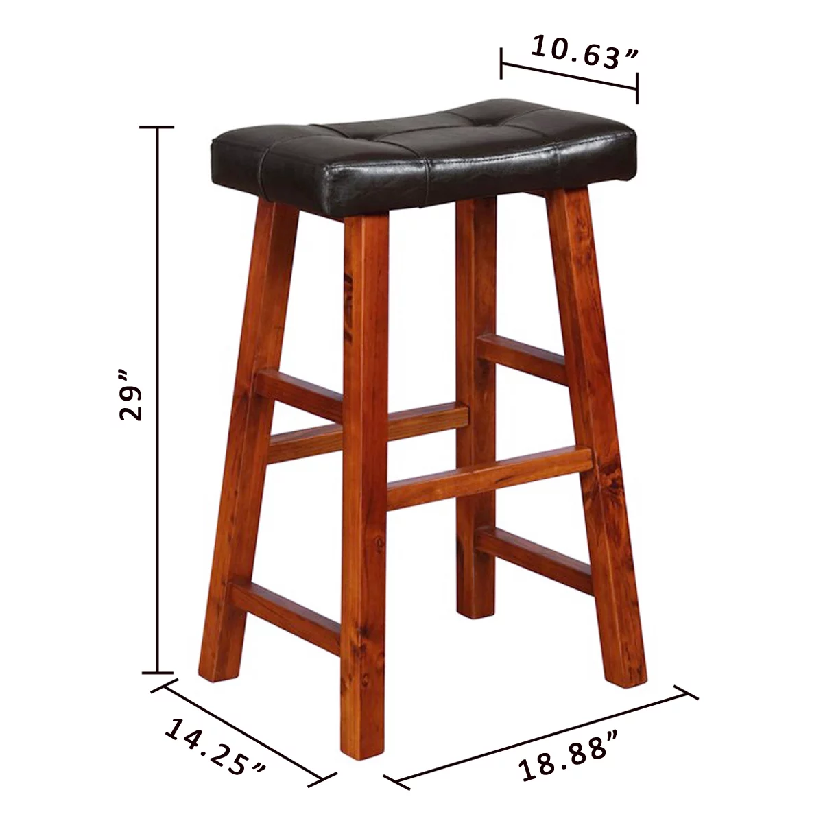 eHemco Heavy-Duty Padded Faux Leather Saddle Espresso Seat Kitchen Counter Barstools, 29 Inches, Dark Oak Legs, Set of 2