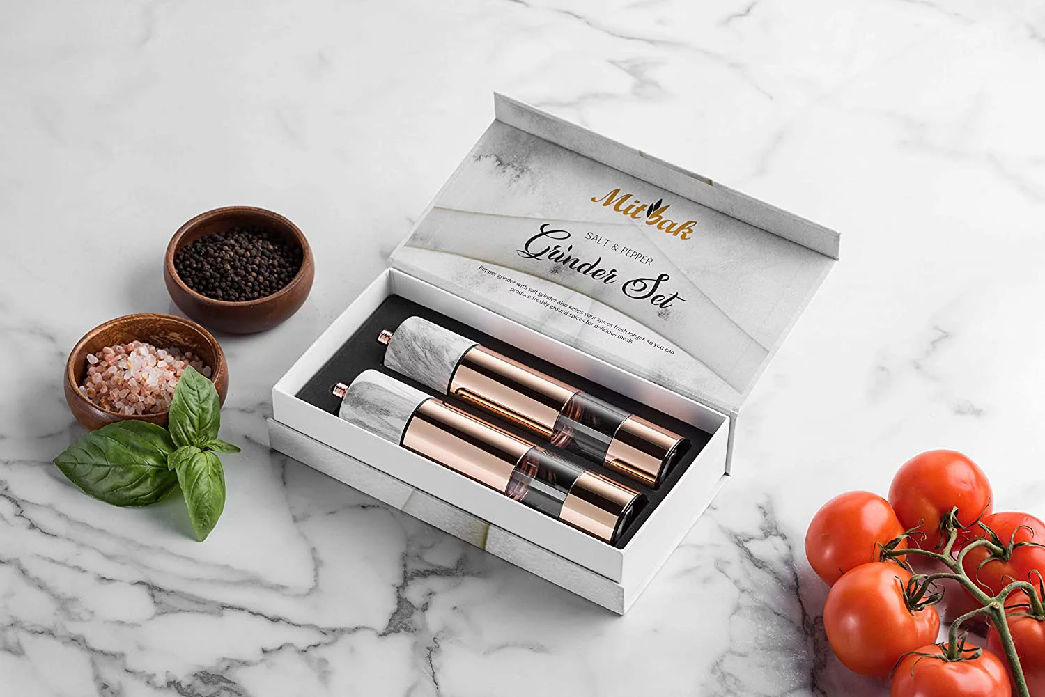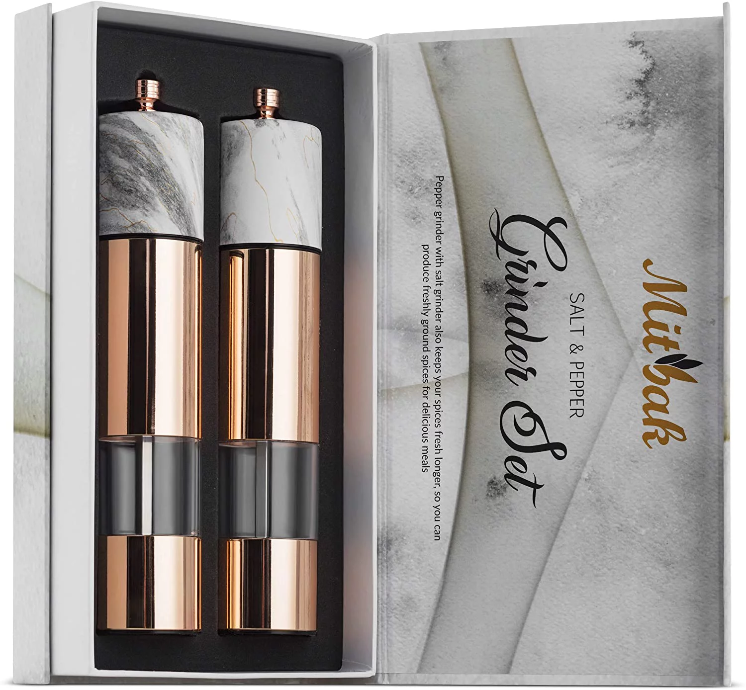 MITBAK Salt and Pepper Grinder Set | Salt and Pepper Mills Easy to Use and Equipped with Adjustable Coarseness And Ceramic Mechanism | Unique Kitchen Gadgets and Tools Packaged in a Stunning Gift Box
