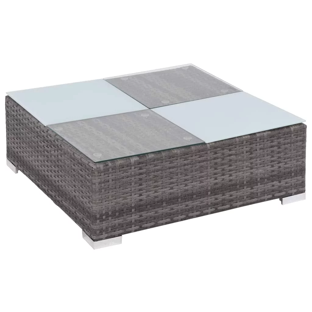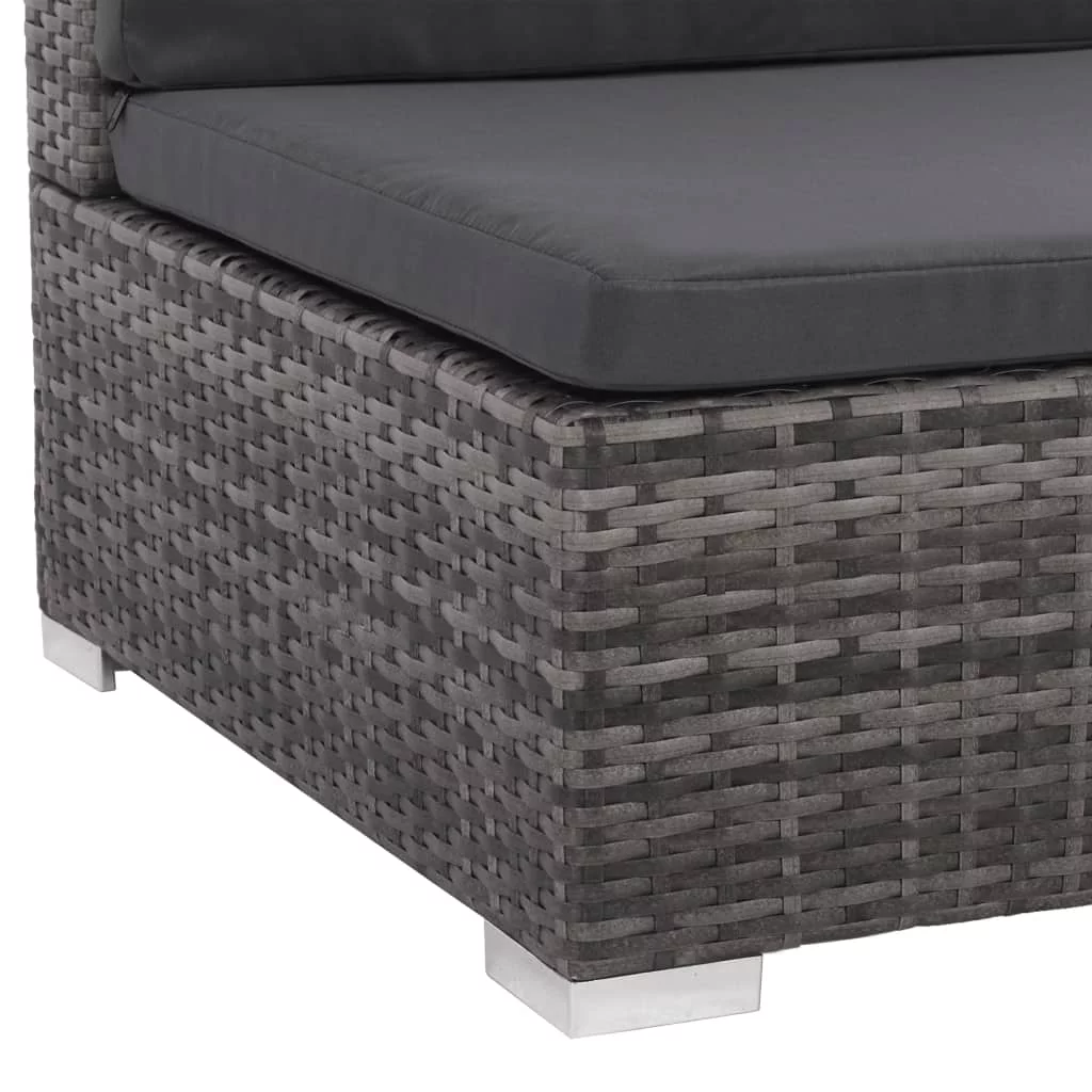 Anself 8 Piece Garden Conversation Set Cushioned 2 Corner with 3 Center Sofa, 2 Half-Round Stool, Coffee Table Gray Poly Rattan Sectional Outdoor Furniture Set for Backyard, Patio, Pool, Balcony