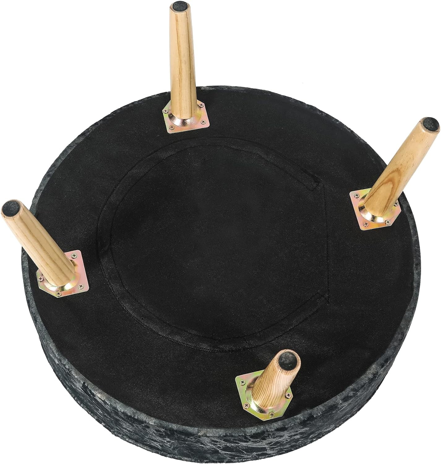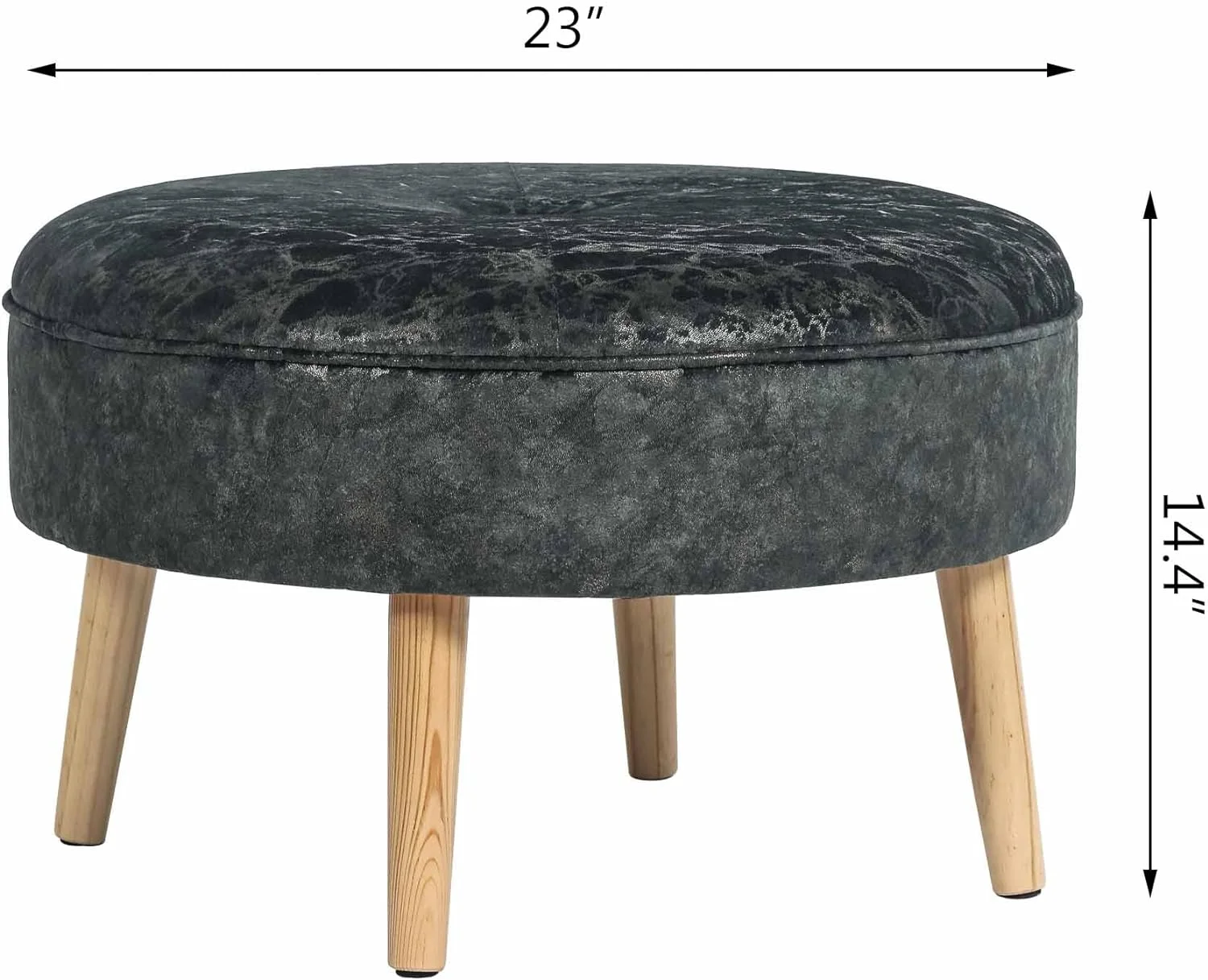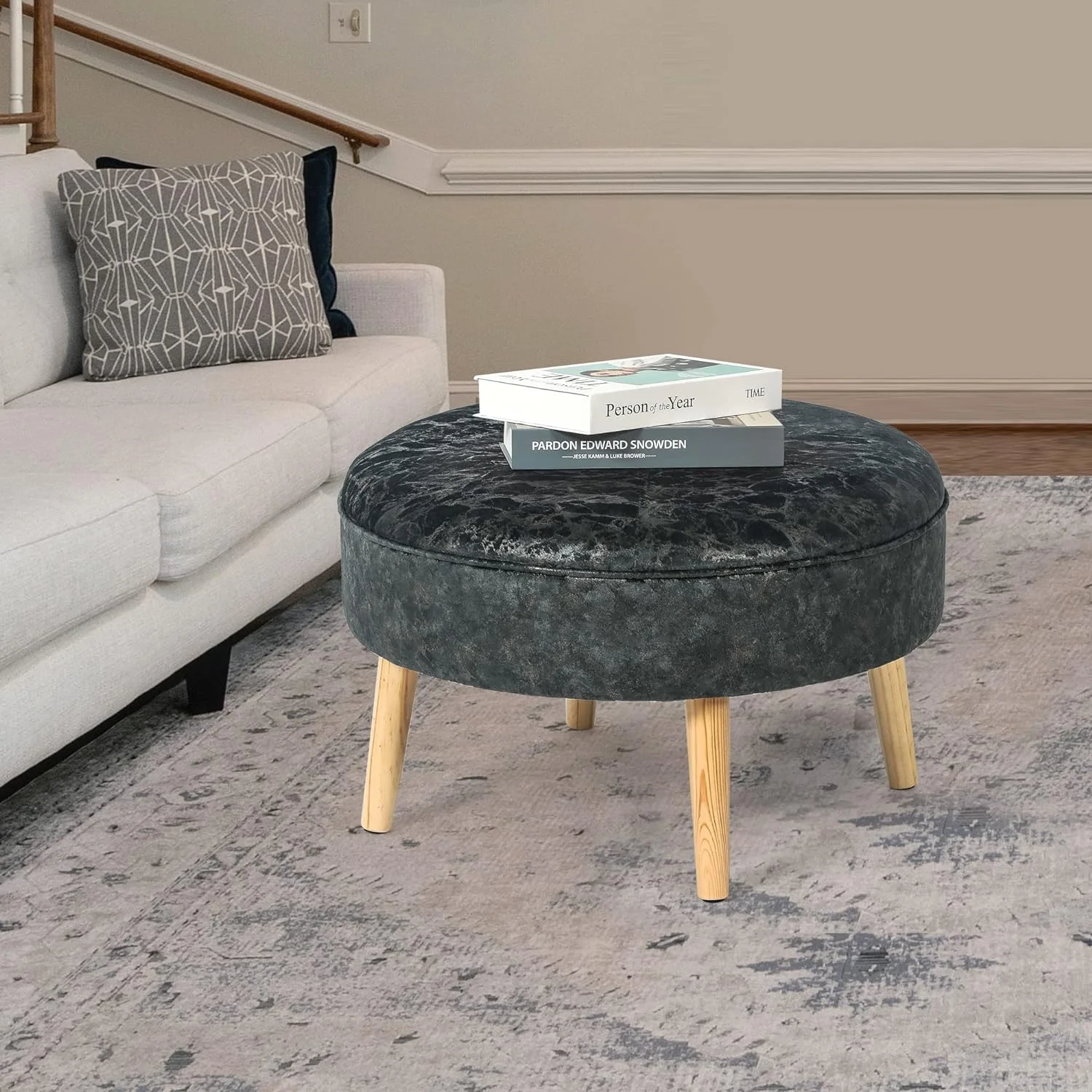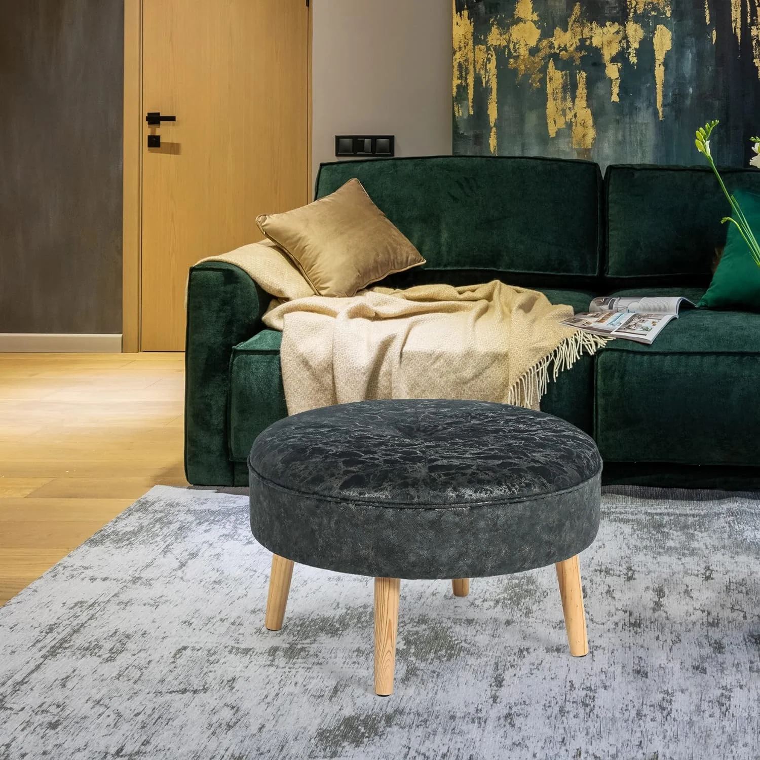 Small Round Ottoman, Velvet Upholstered Footrest Stool Seat With Wooden Legs, Vanity Stool Coffee Table For Bedroom Living Room (Grey-Gold)