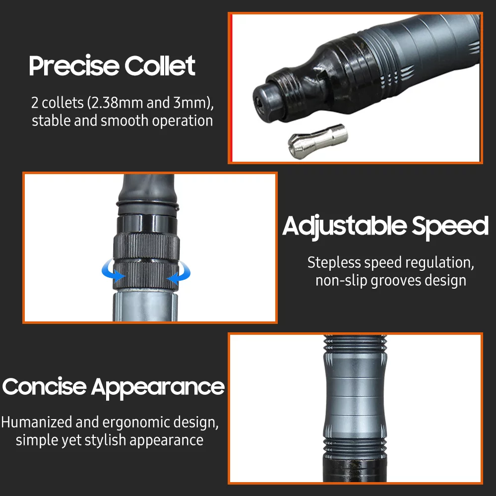 Aibecy Pencil Type Air Die Grinder with Air Hose 2 Collets 1/4 Inch Pneumatic Rotary Pen Stepless Speed Handheld Air-operated Sander Polisher Grinding Engraving Drilling Tool with Spanner Carry Cas