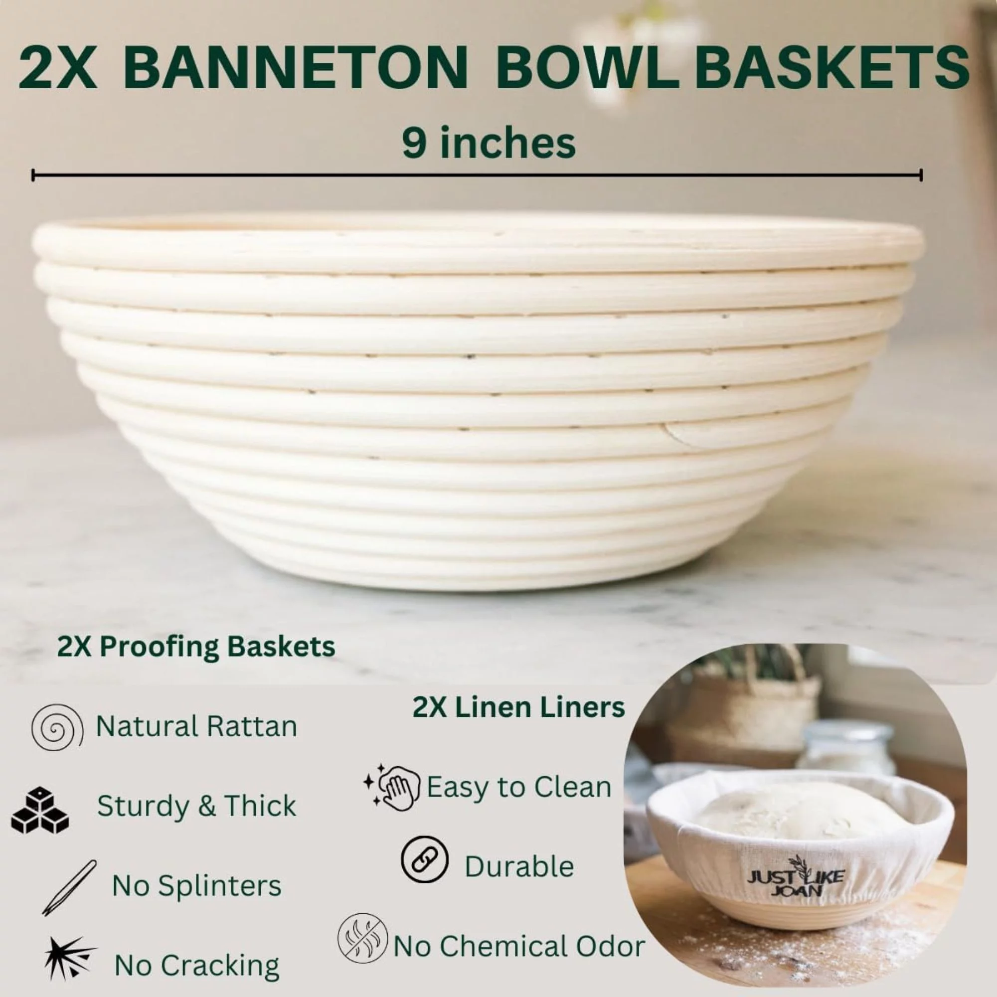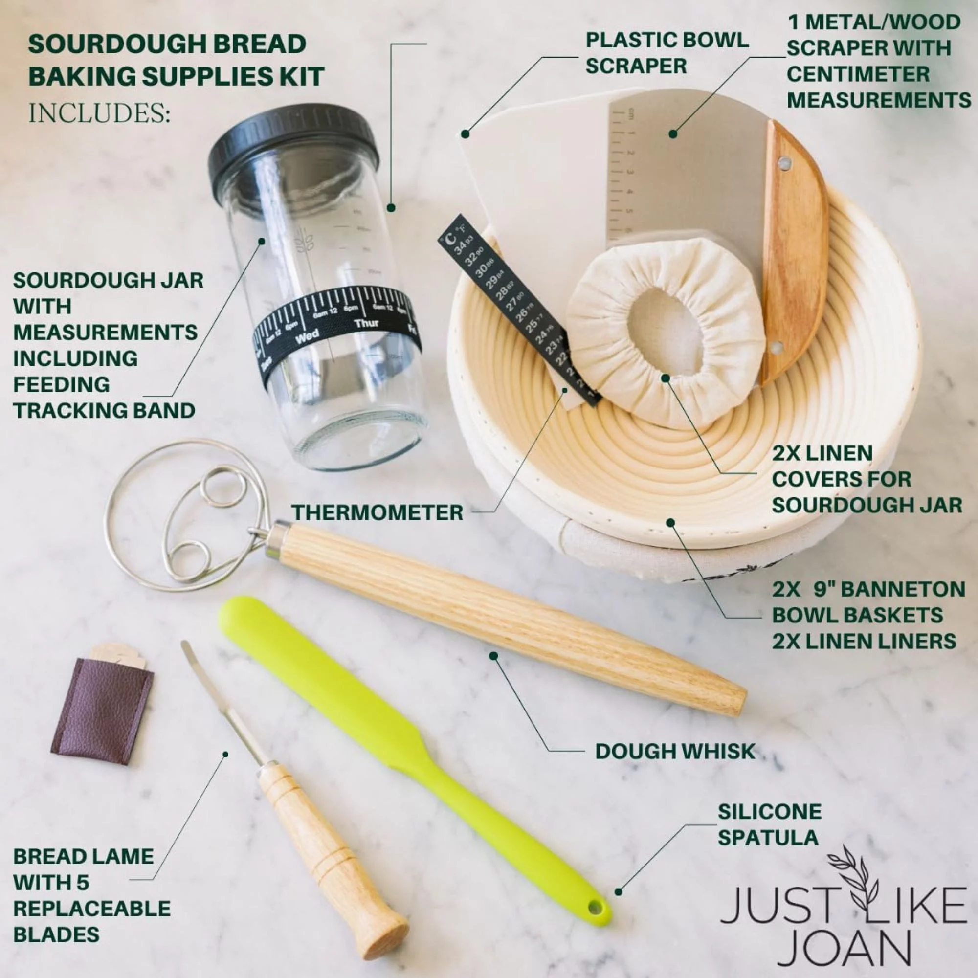 Sourdough Bread Baking Supplies Kit Ultimate Bread Baking Kit With Sourdough Starter Jar & Banneton Bowl Basket Kit Easy Cleaning Sourdough Bread Starter Kit Ideal Bread Accessories and Tools