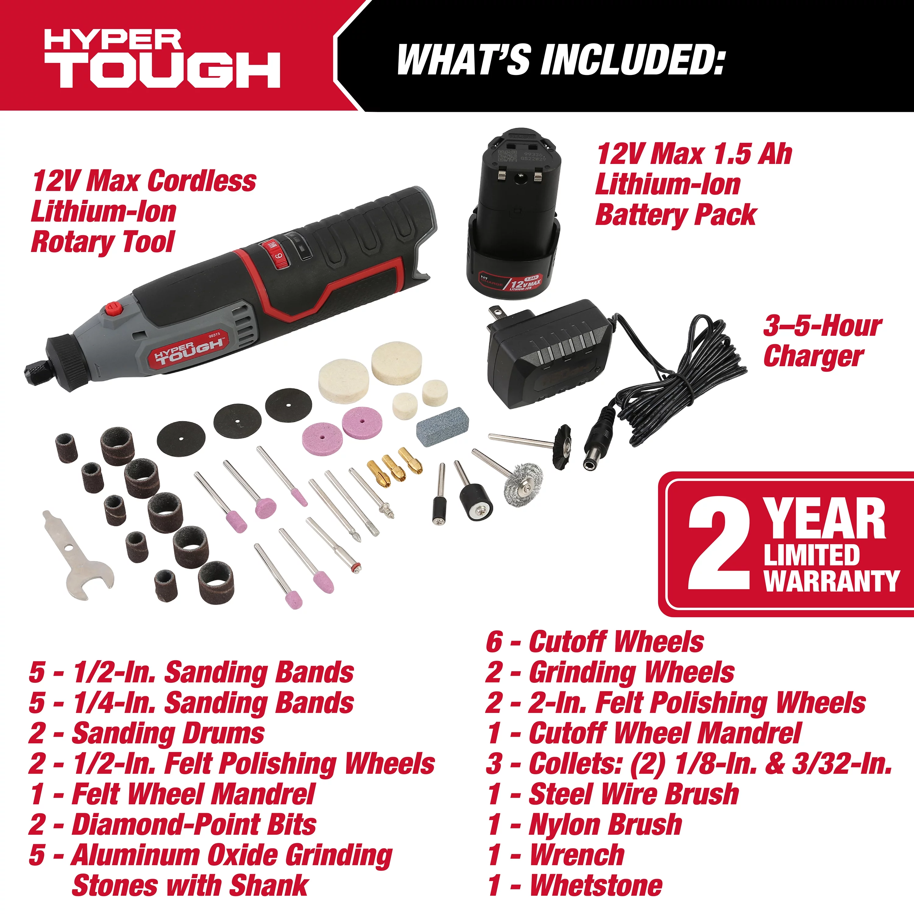 Hyper Tough 12V Max* Lithium-Ion Cordless Variable Speed Rotary Tool, 40 Accessories, with 1.5Ah Battery and Charger, 99315