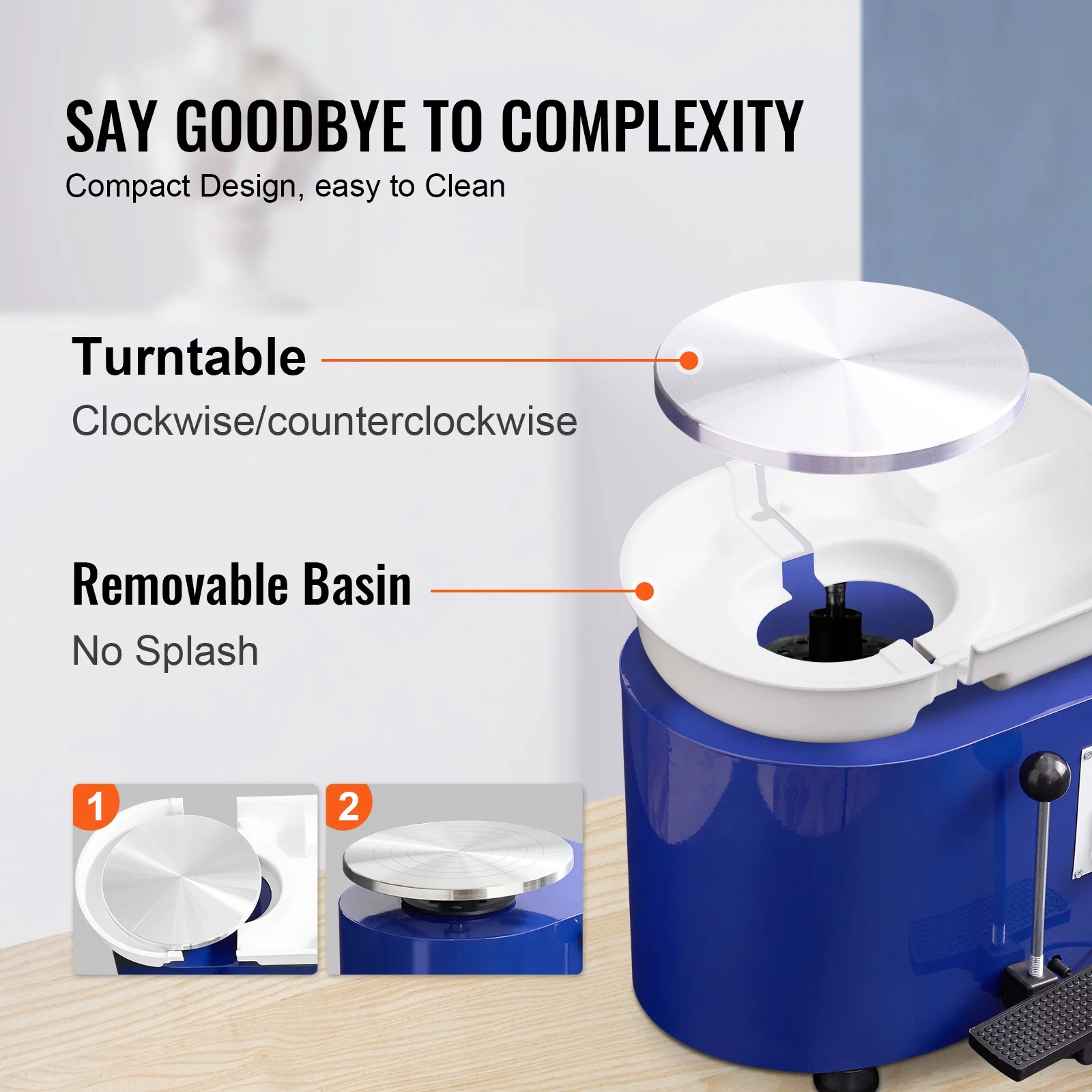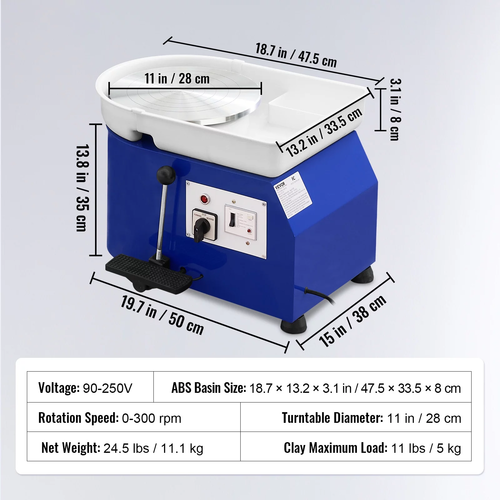 BENTISM Pottery Wheel, 11" Ceramic Wheel Forming Machine, Adjustable 60-300RPM Speed Handle and Foot Pedal Control, ABS Detachable Basin Sculpting Tool Apron Accessory Kit for Work Art Craft DIY 350W