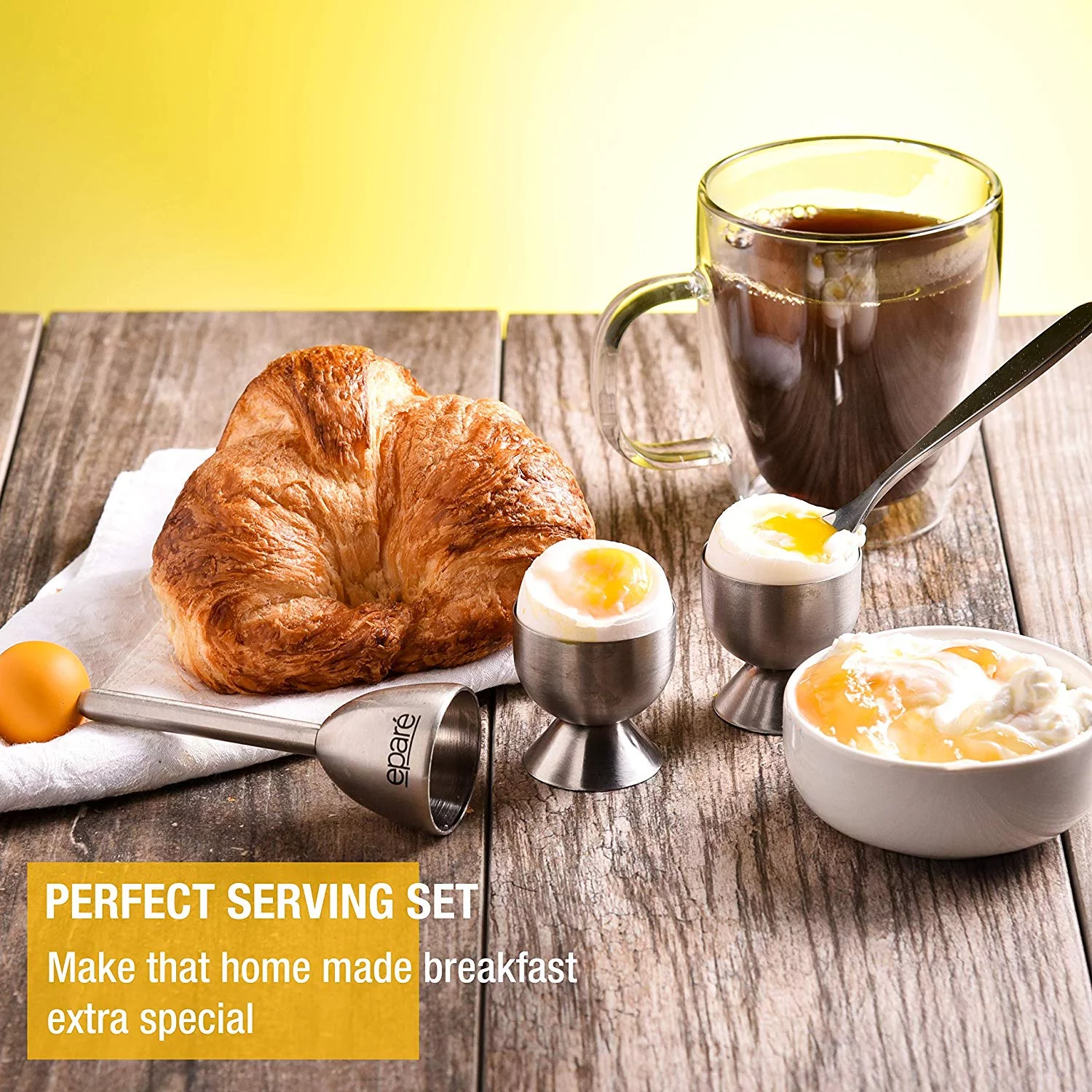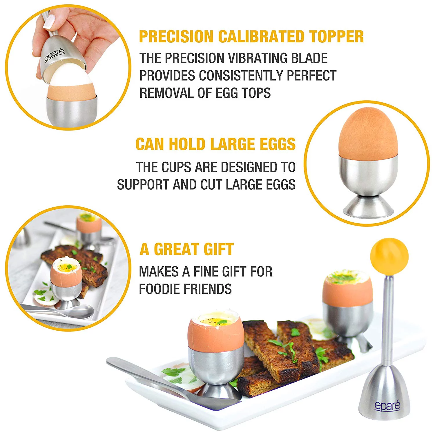 Epare Egg Cracker Topper Set - Complete Soft Boiled Egg Tool Set - Includes Egg Cups, Cutter, Spoons - Easy Eggs Opener