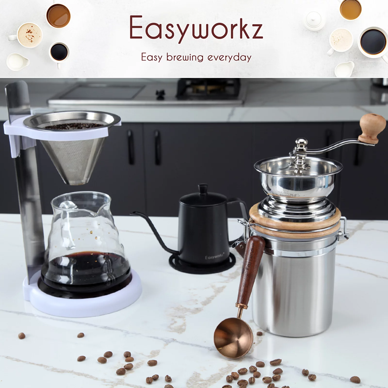 Easyworkz Manual Coffee Grinder with Airtight Canister, Adjustable Setting, Stainless Steel Burr Bean Mill Tool