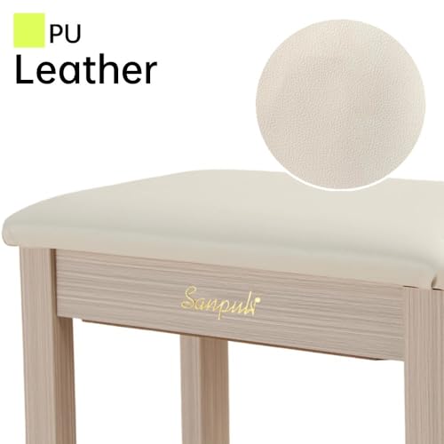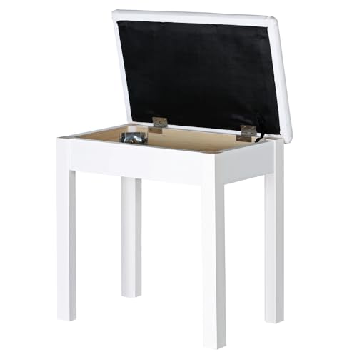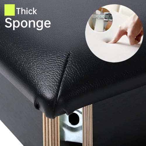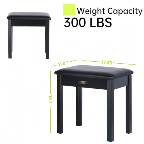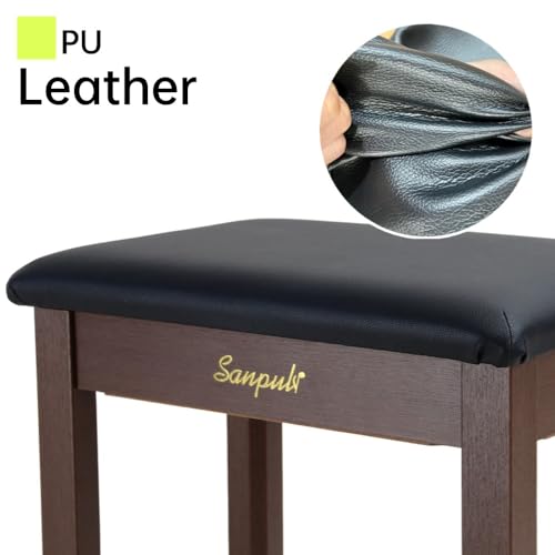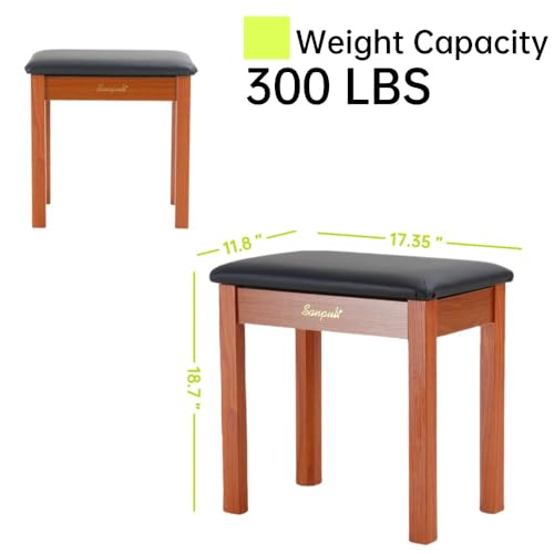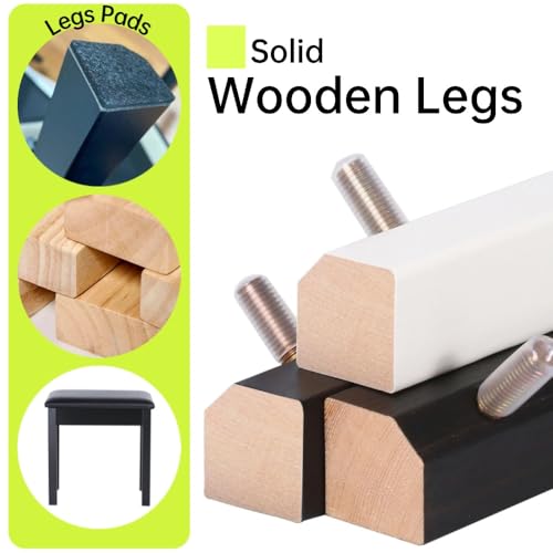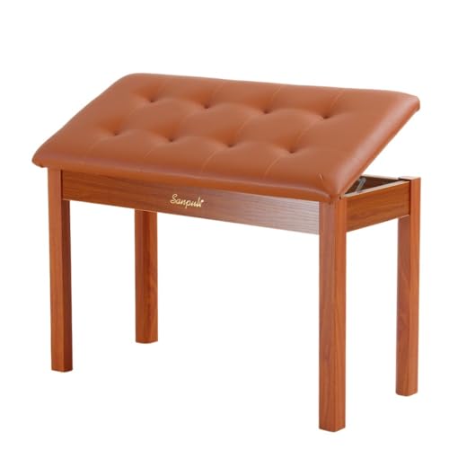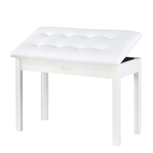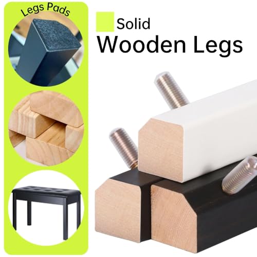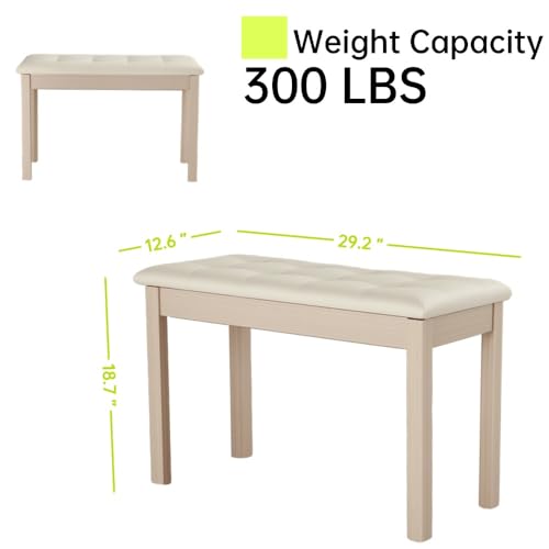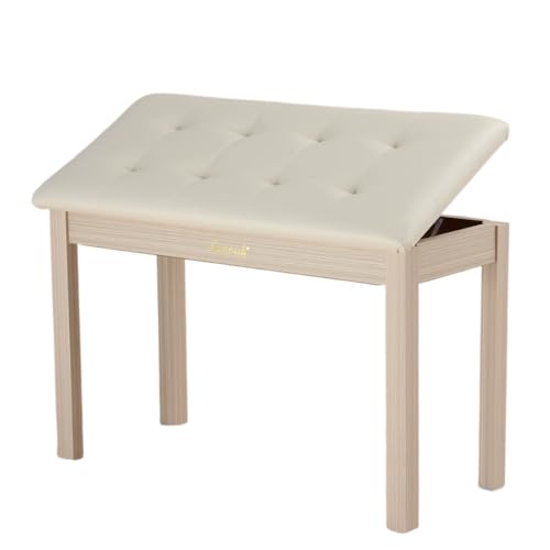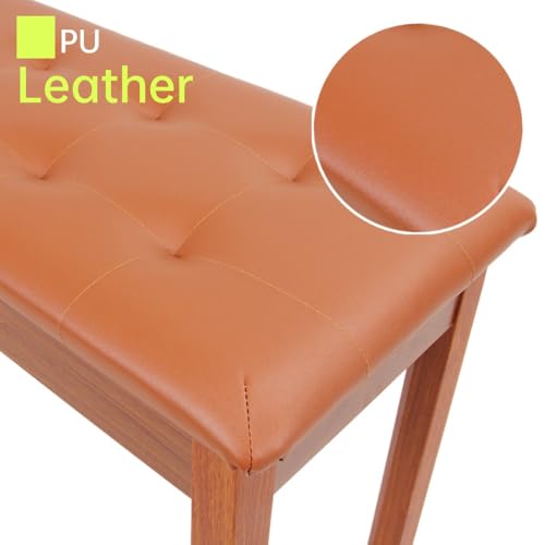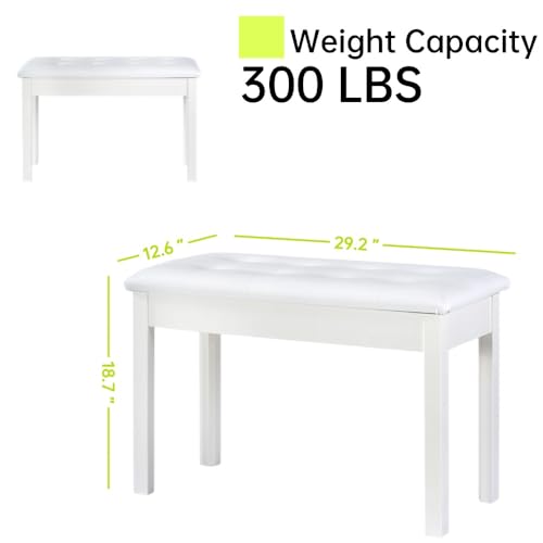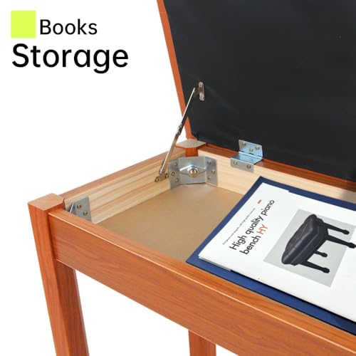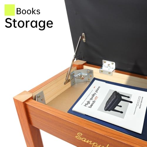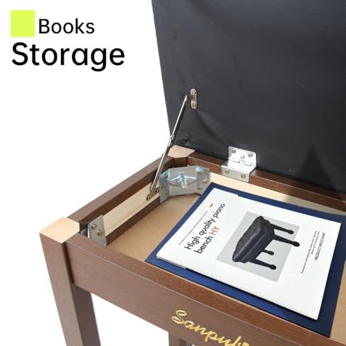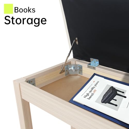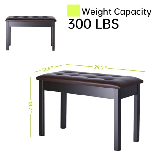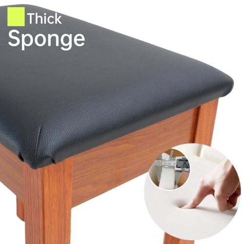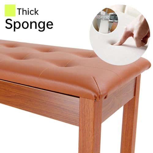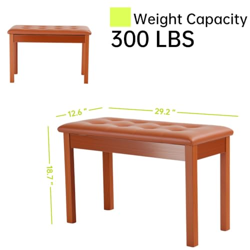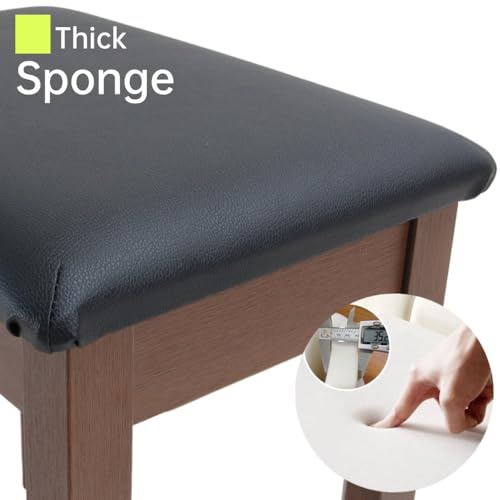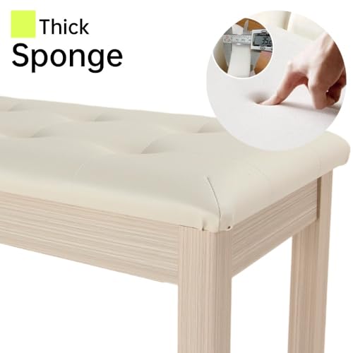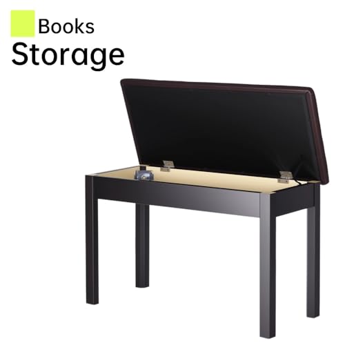 Solid Wood Duet Piano Bench with Storage, Piano Stool and Padded Cushion, Keyboard Bench with Bookcase, Piano Chair and Piano Seat with High-Density Sponges.