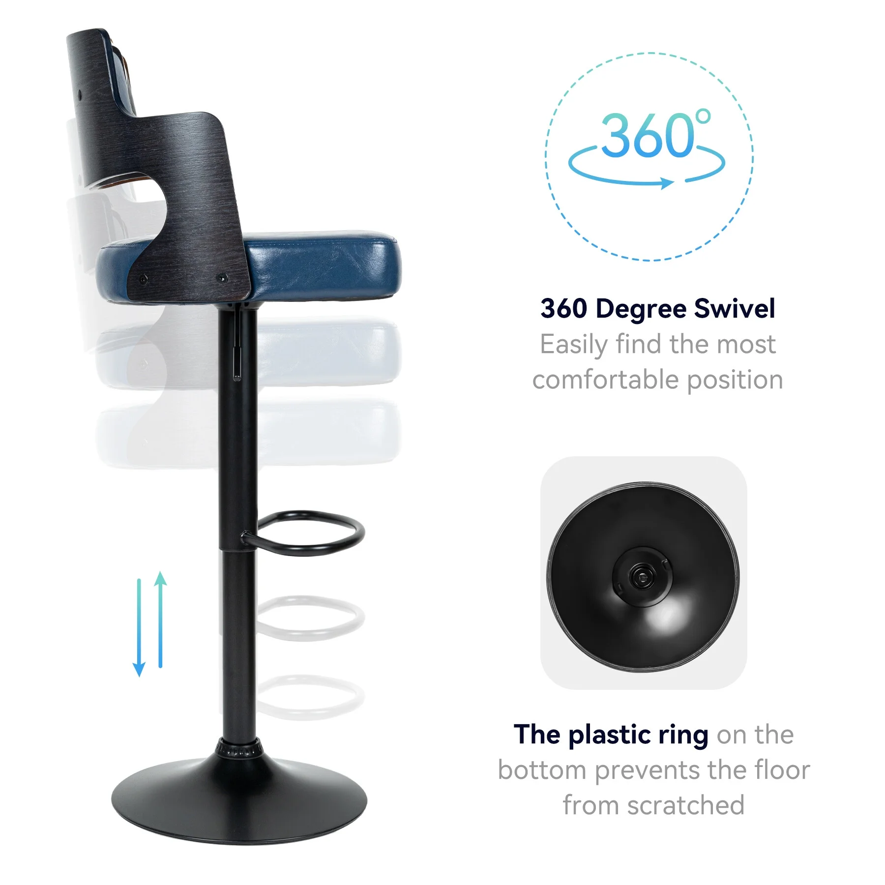 Hawsaiy Morden Adjustable Thickened Seat Bar Stools with Wood Back Set of 4