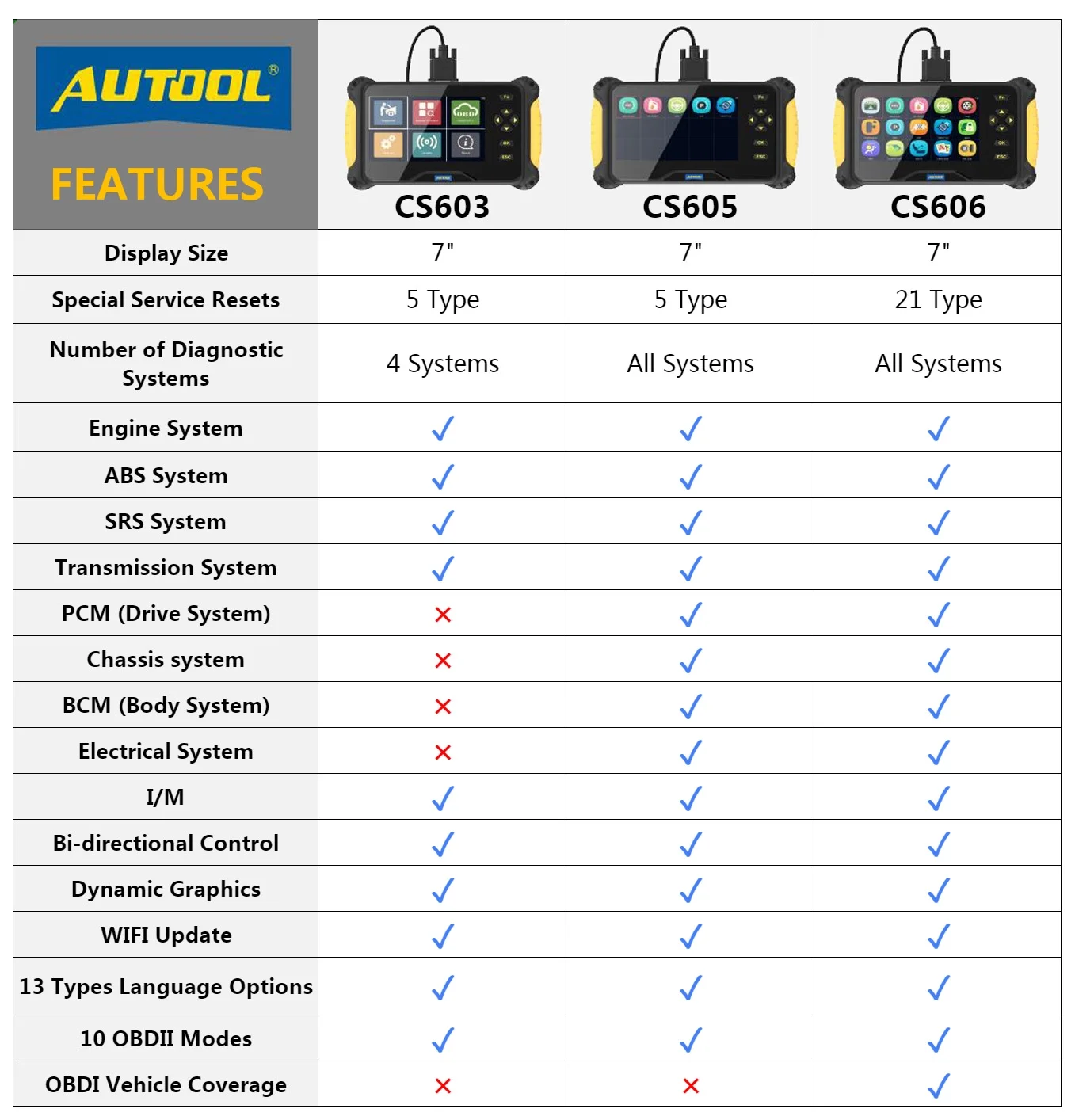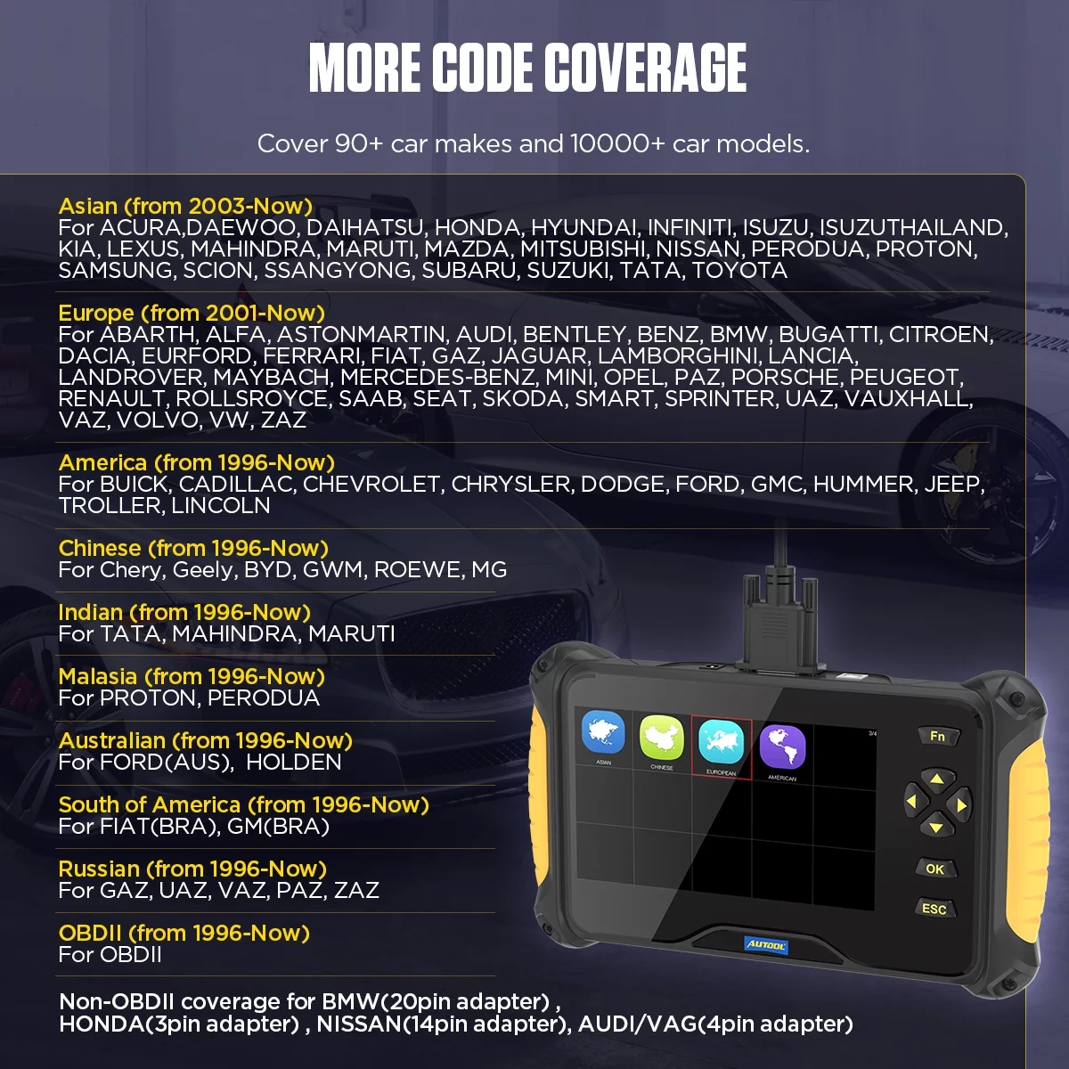 AUTOOL CS605 Car Code Reader OBD2 Scanner Computer Reader Automotive Diagnostic Tool Oil/EPB/ABS/SAS/ Throttle Reset Diagnostic Tool for All PCM BCM Electrical System