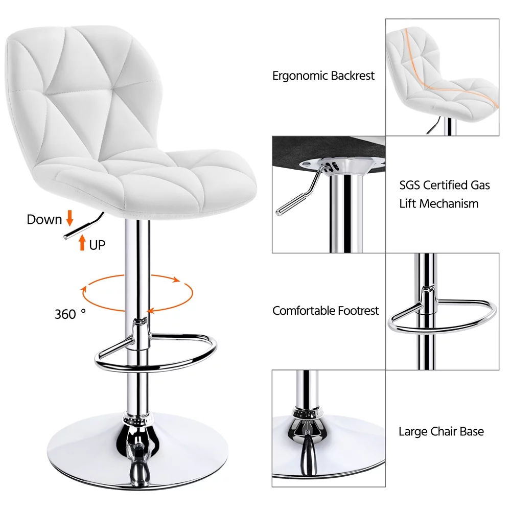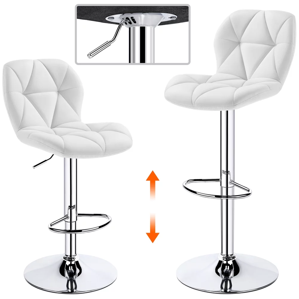Topeakmart 2pcs Adjustable PU Leather Swivel Bar Stools with Backrest, White