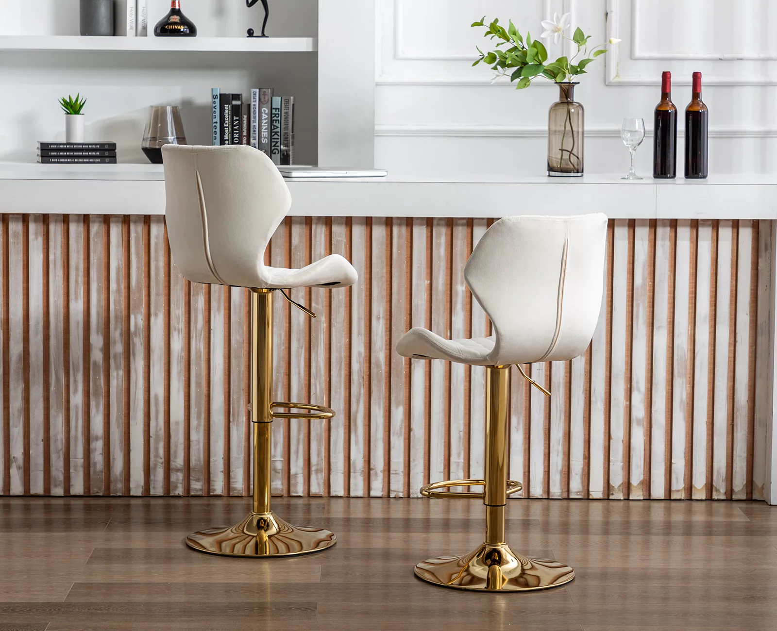 Guyou Adjustable Swivel Bar Stools Set of 2, Modern Velvet Counter Height Chairs with Backrest and Footrest for Kitchen Island Bar Restaurant, Cream