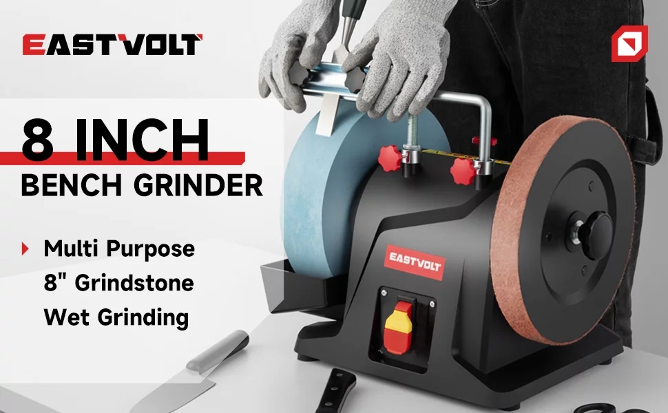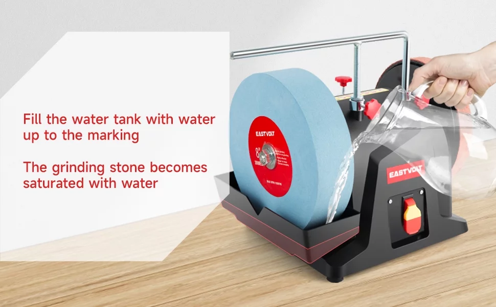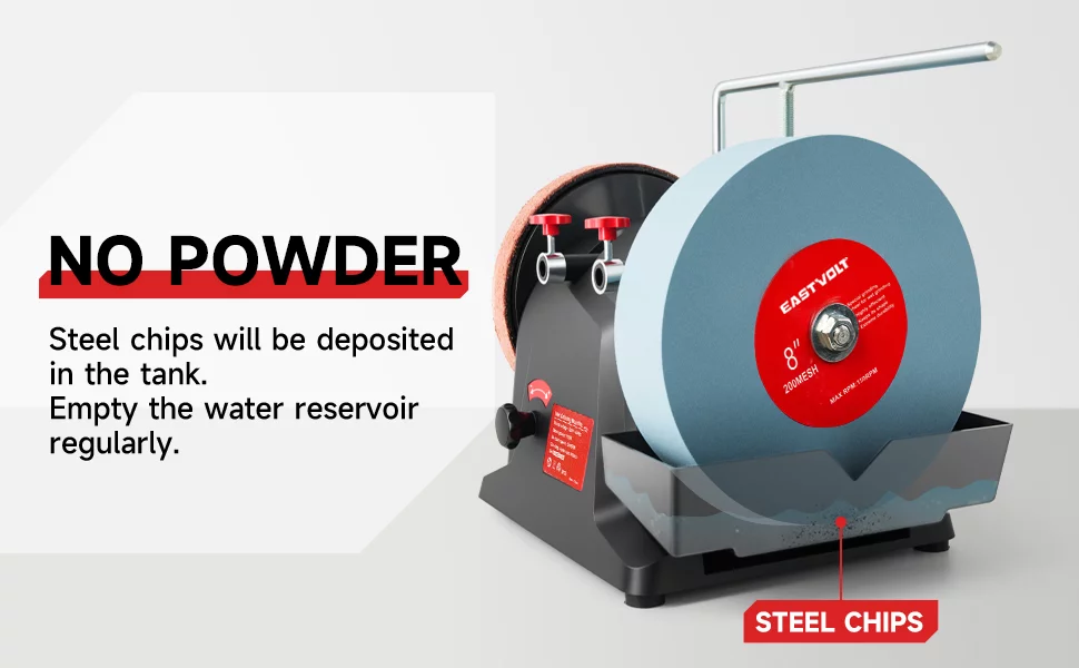Eastvolt 8 Inch Low Speed Wet Grinding Machine, 120RPM Water Cooled Sharpening System for Household Knives and Woodworking Tools