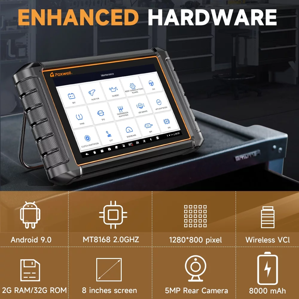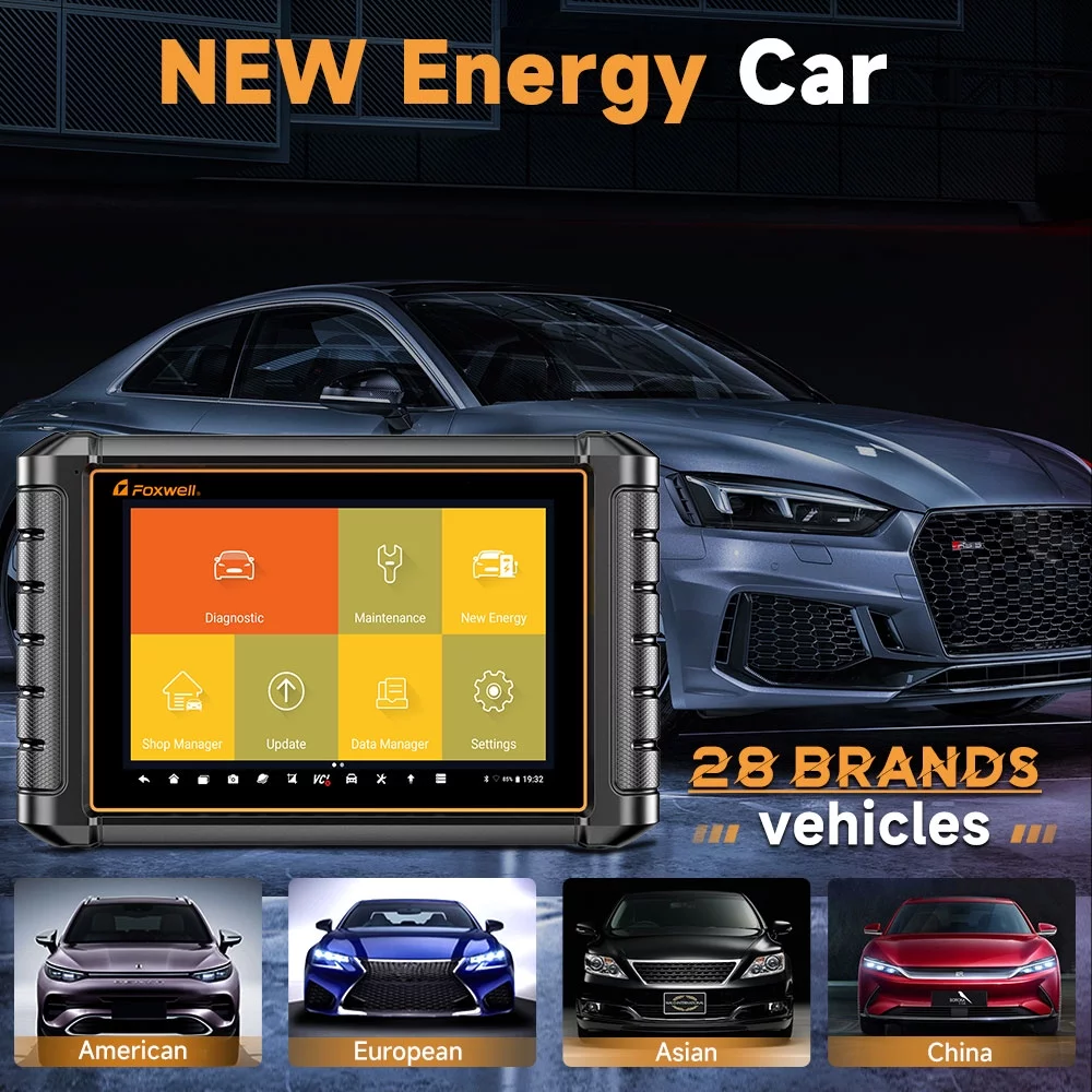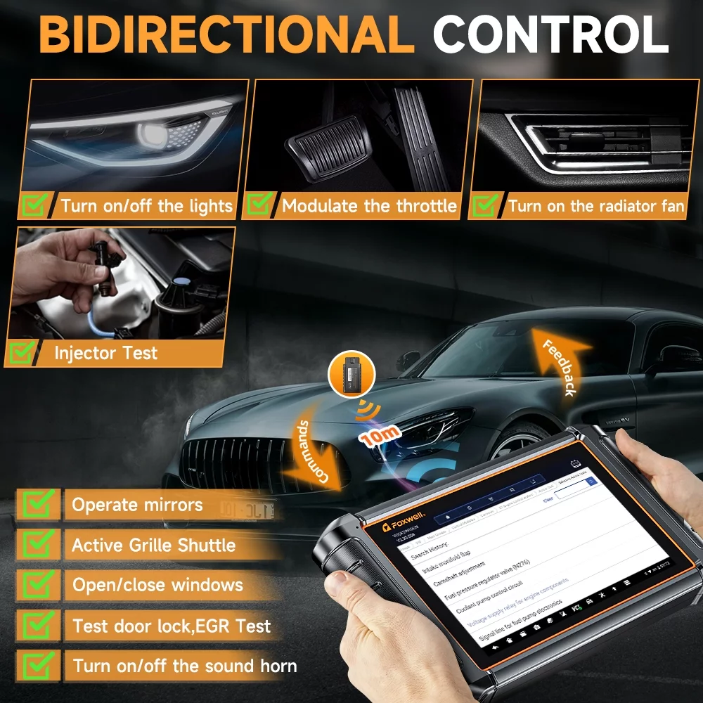 FOXWELL NT909 Bluetooth Automotive Bi-directional Diagnostic Scan Tool All System OBD2 Scanner 30+ Reset Functions ECU Coding Automotive Diagnostic Scanner Tablet Supports Electrical & New Energy Cars