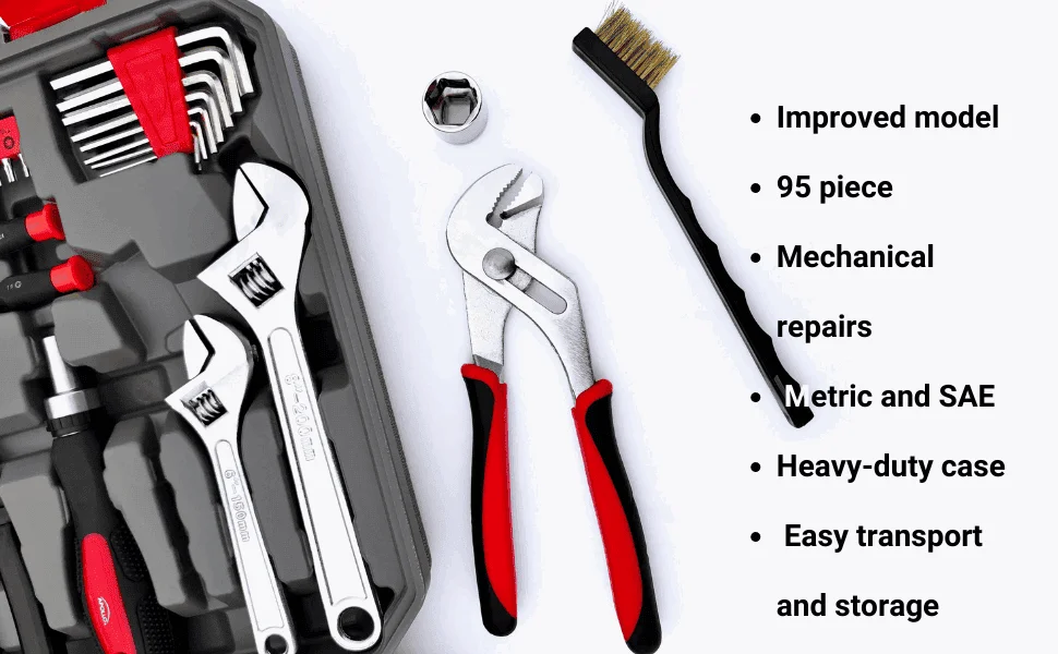 95 Piece Mechanics Tool Set in Metric and SAE for Small Engine, Mechanical and General Repairs – DT1242
