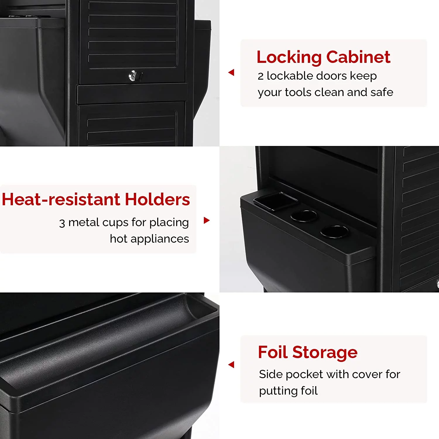 OmySalon Salon Trolley with Lock 6 Drawers, Hot Tools Holder, Hair Cart Organizer w/Wheels, Salon Rolling Cart for Barber Hairdresser Cosmetology Lockable Stylist Storage Station