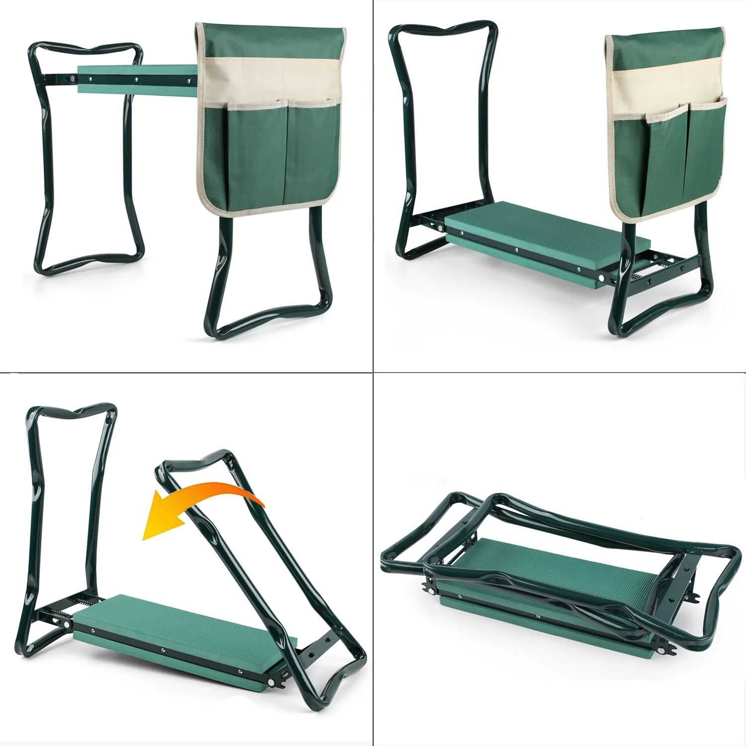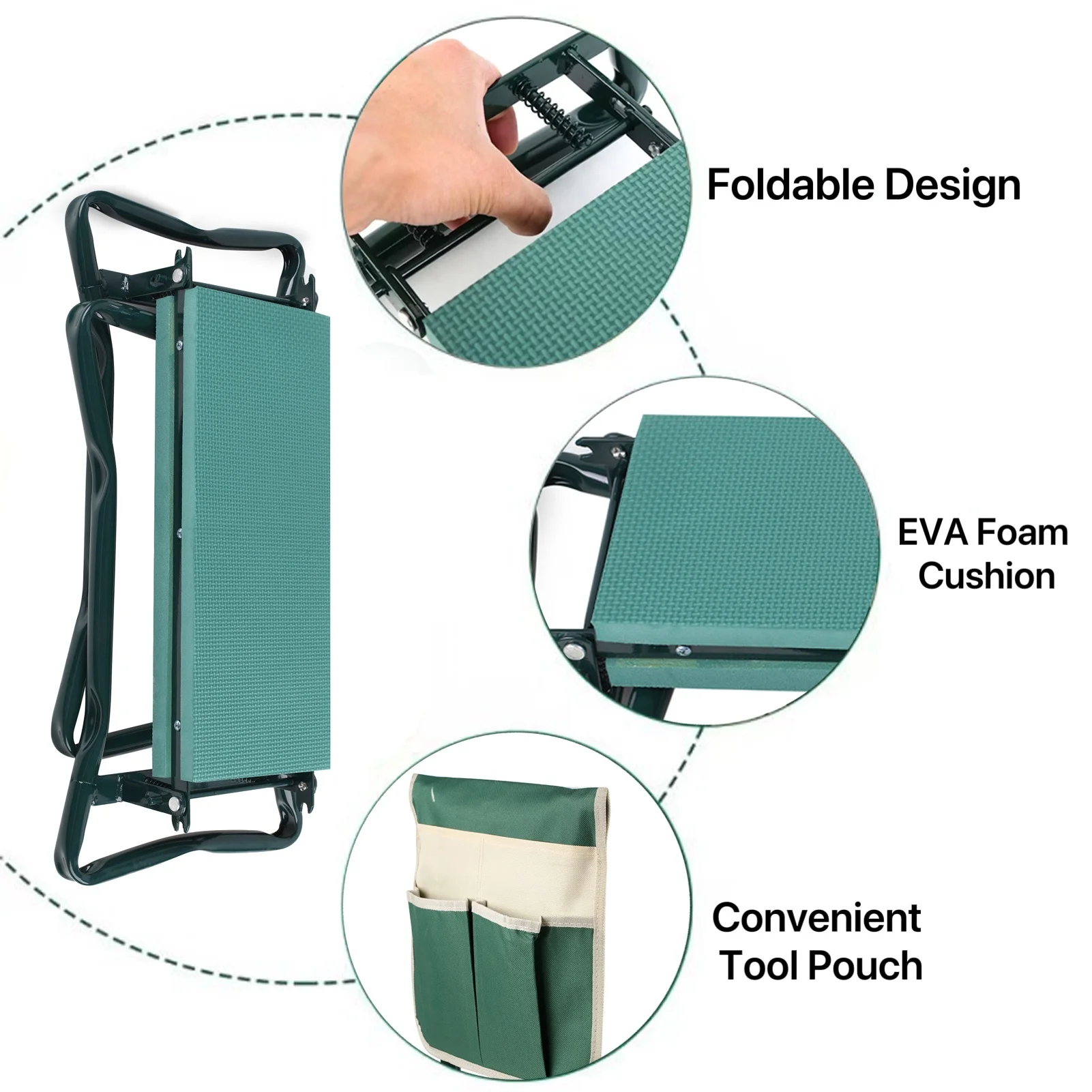 Folding Garden Kneeler Seat Bench With Stool Pouch, 2 in 1 Portable Garden Chair EVA Foam Pad for Gardening(Green)