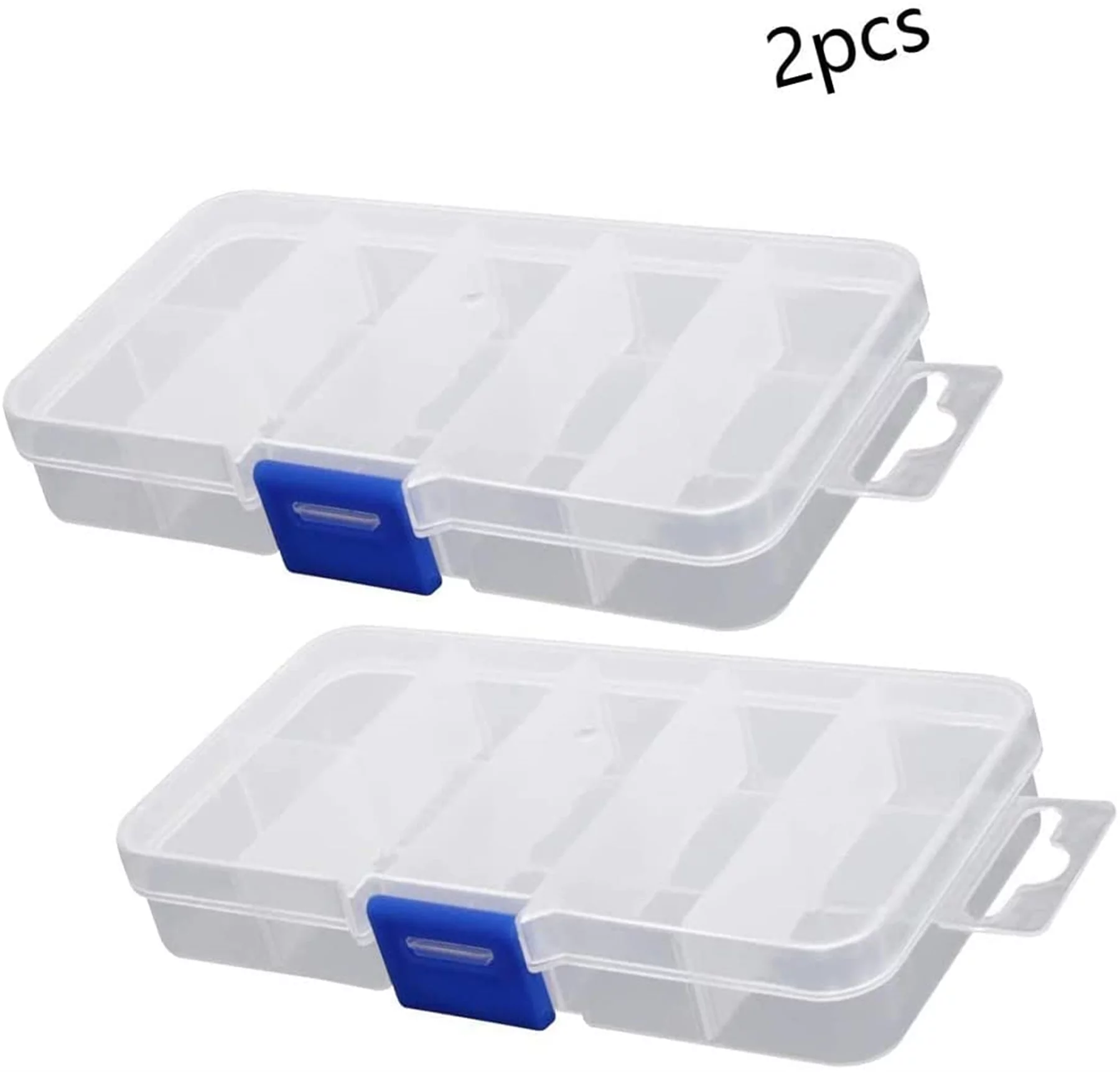 PP Component Storage Box, Plastic Organizer Adjustable Container Removable Grids Tool Boxes, 10 Removable Grids Tool Boxes, for Electronic Component Small Accessories 2Pcs