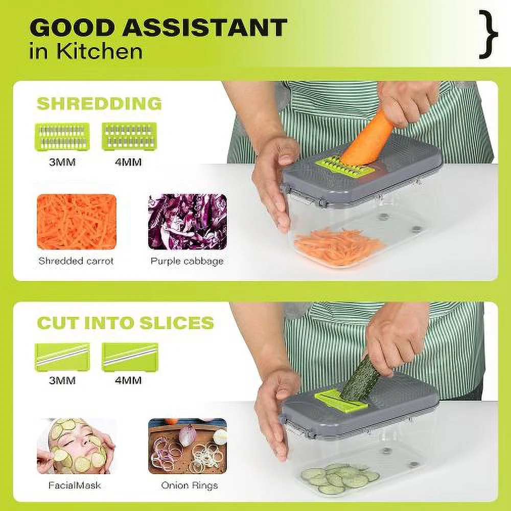 Miibox Vegetable Chopper with Container 22-in-1 Veggie Choppers and Dicers Food Chopper Cutter for Onion Tomato Multi Kitchen Tool with Lemon Squeezer -13 Blades