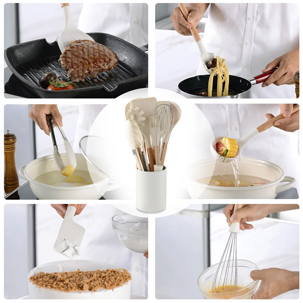 Dazzduo Kitchenware set,Silicone Utensil Set Tools Wooden Handle Kitchen Tools Kitchen Tools Wooden Set 10 PCS Heat Resistant Kitchen Resistant Kitchen Tools Non-Stick Kitchen Utensils