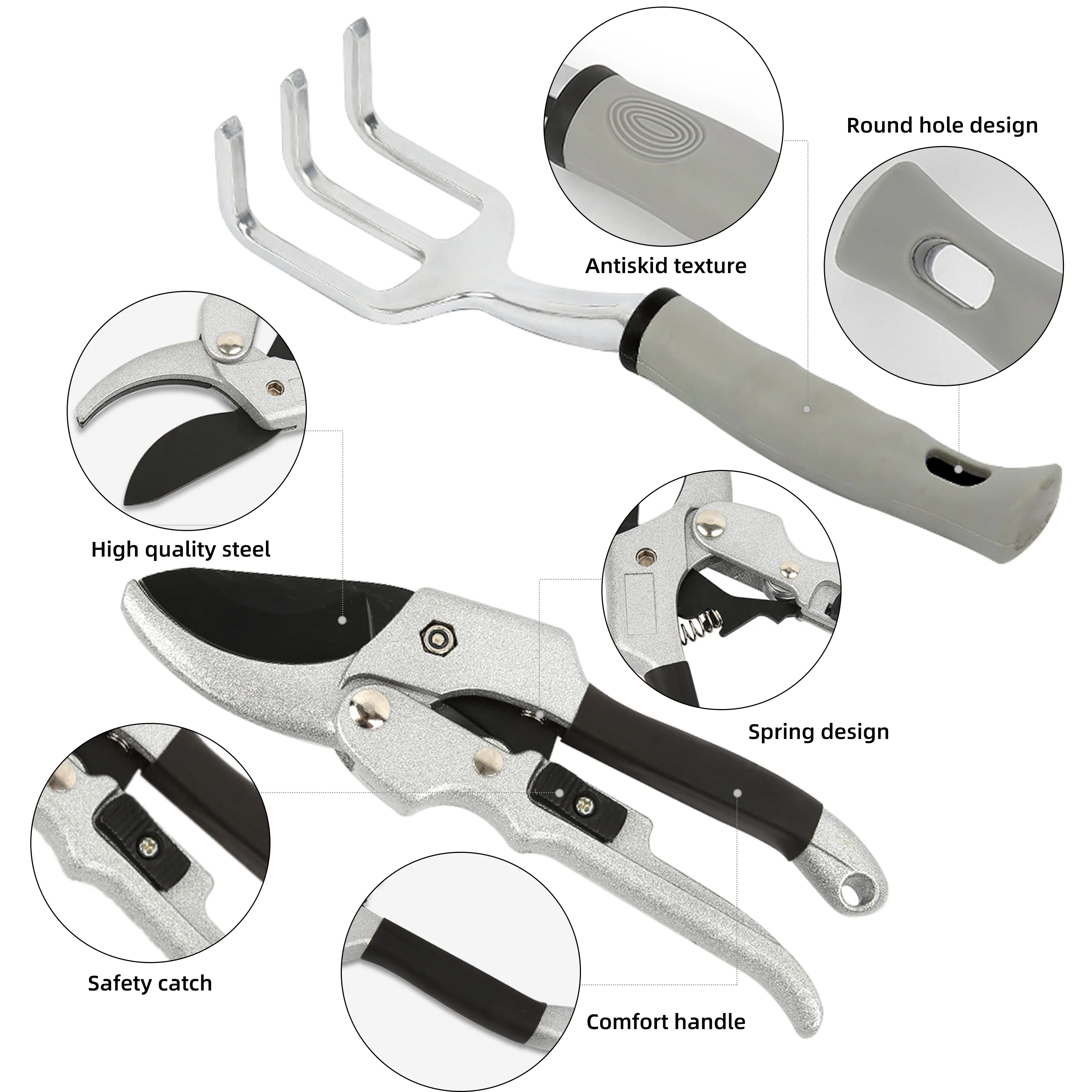 Ltrototea Garden Tool Kit, Aluminum Alloy Gardening Hand Tools with Storage Tote Bag,Heavy Duty Garden Tool Set for Women and Men