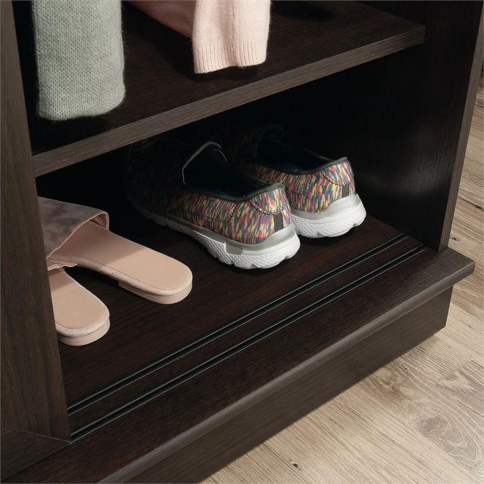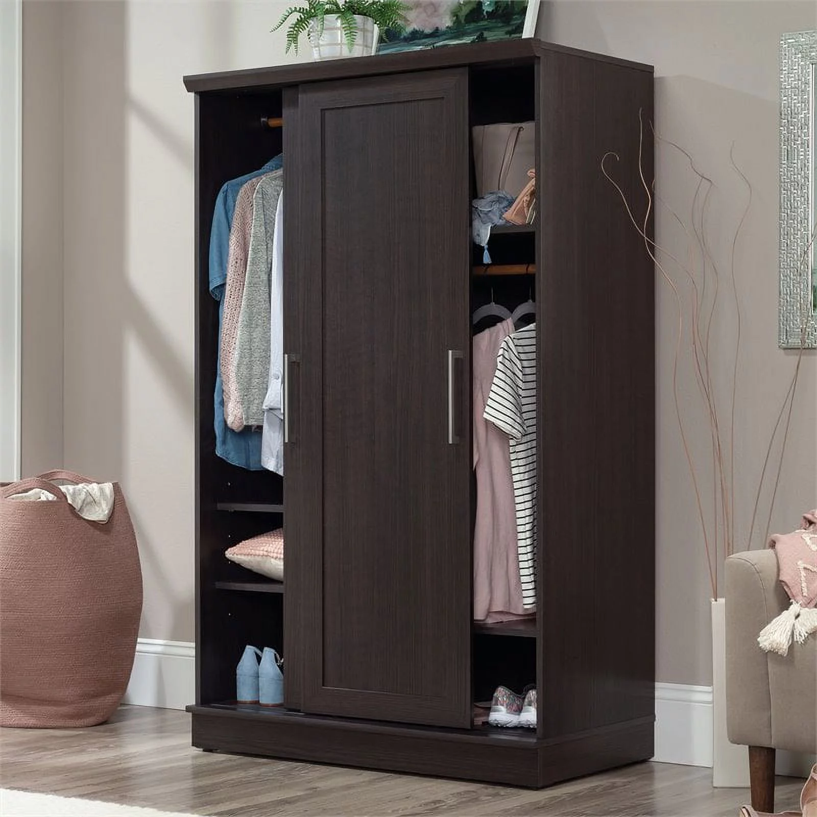 Sauder Nova Loft Open Wardrobe with Drawers, Grand Walnut Finish