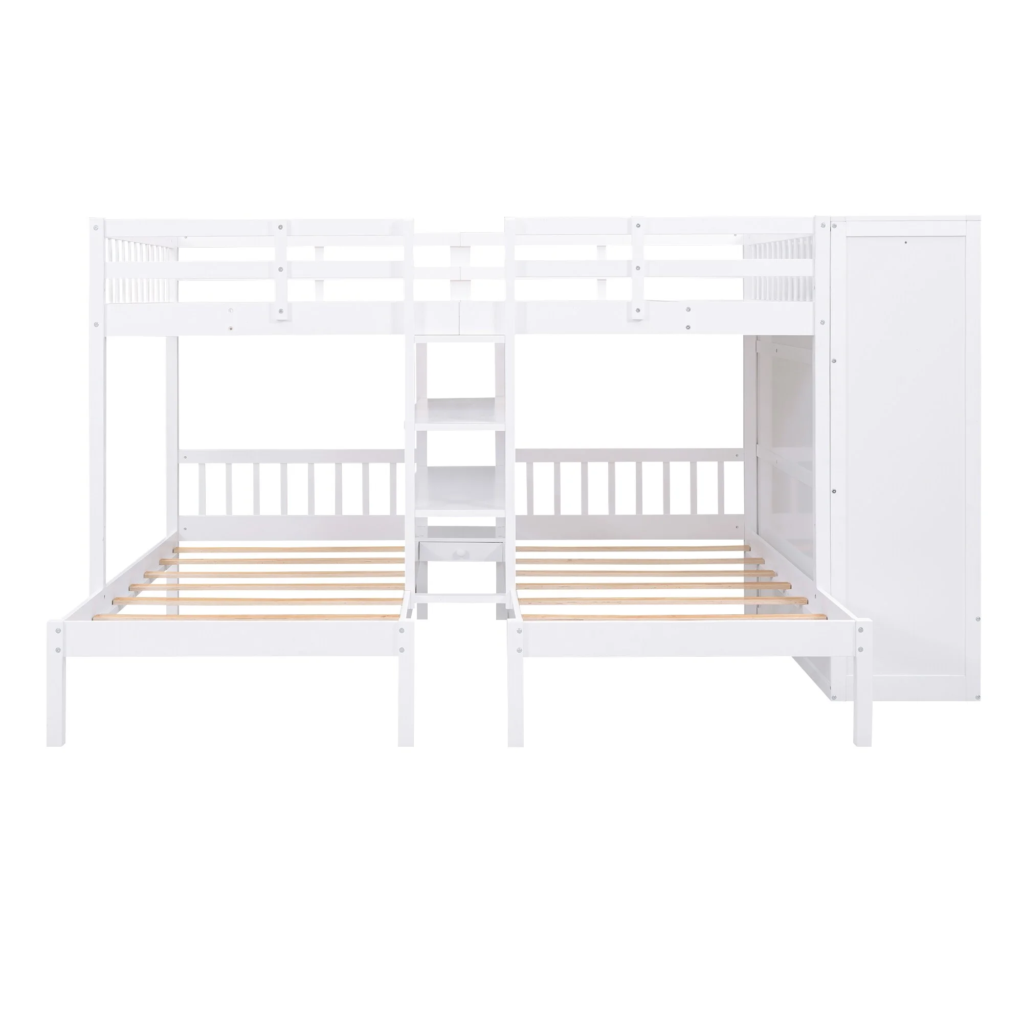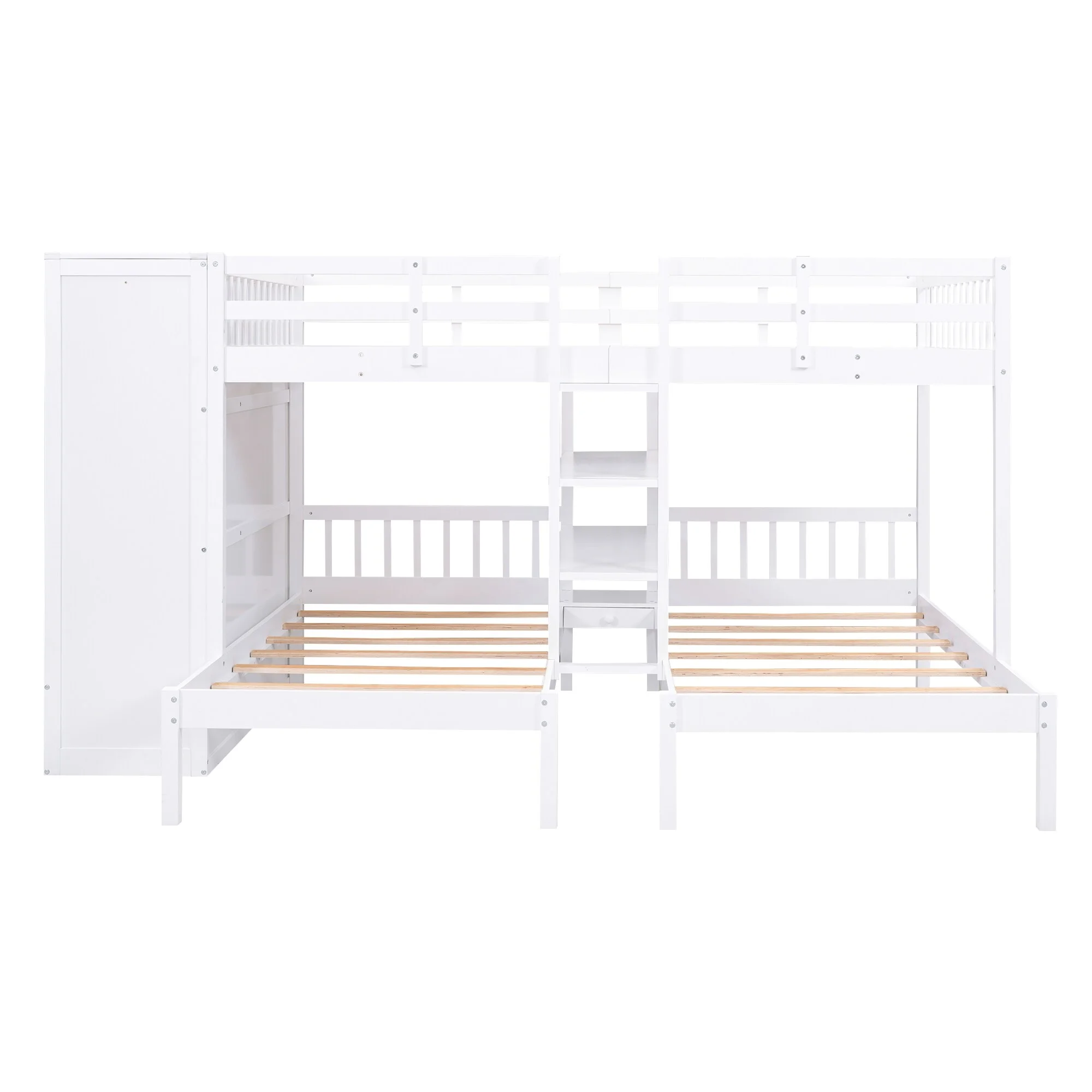 Full-Over-Twin-Twin Bunk Bed with Shelves, Wardrobe, Mirror, and Storage Solutions - Space-Saving Furniture for Growing Families White
