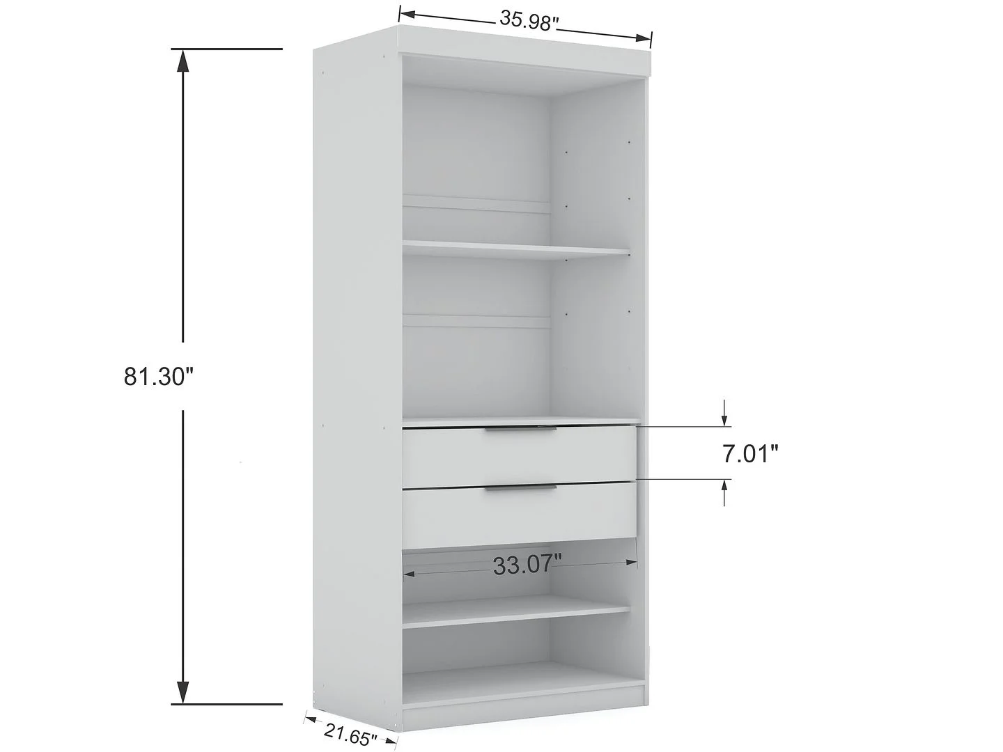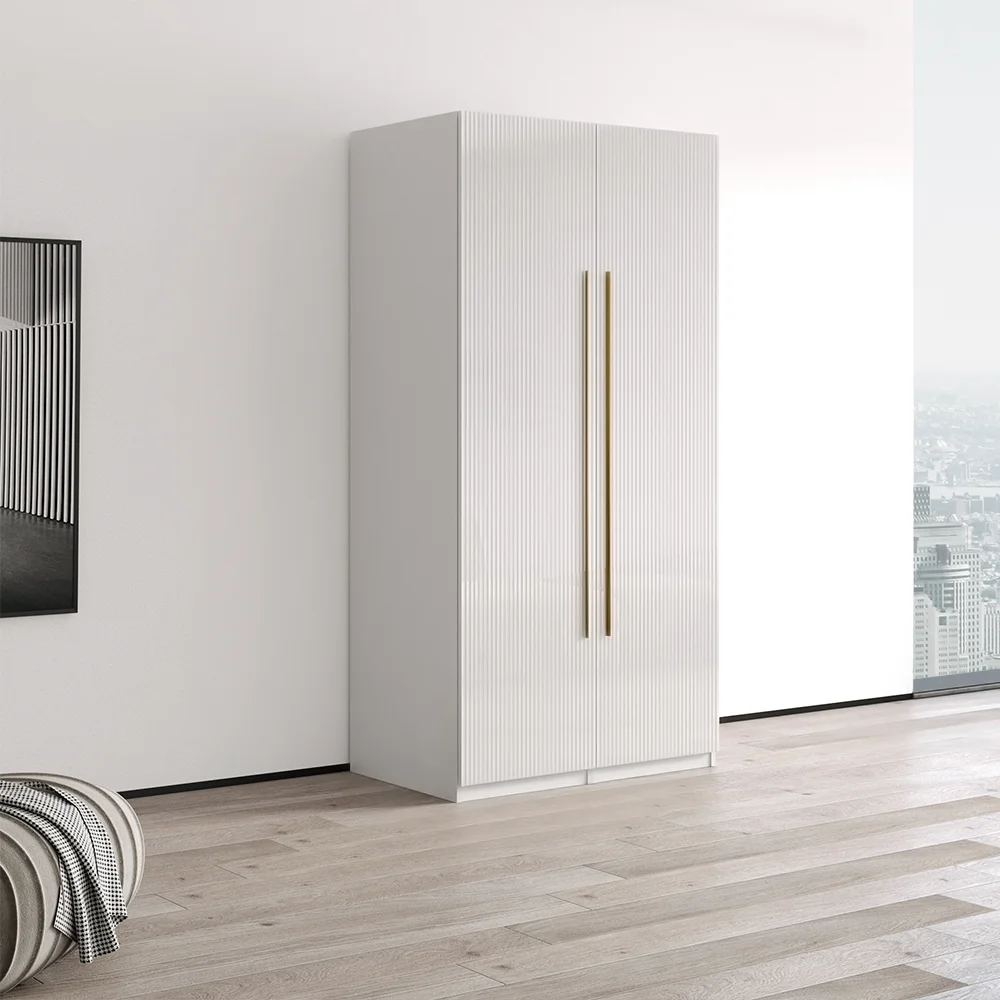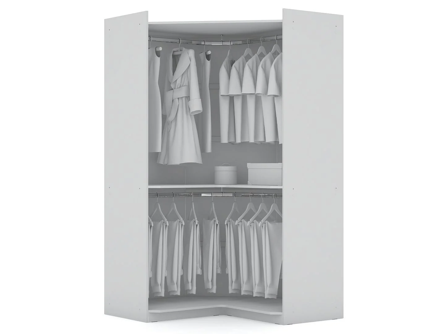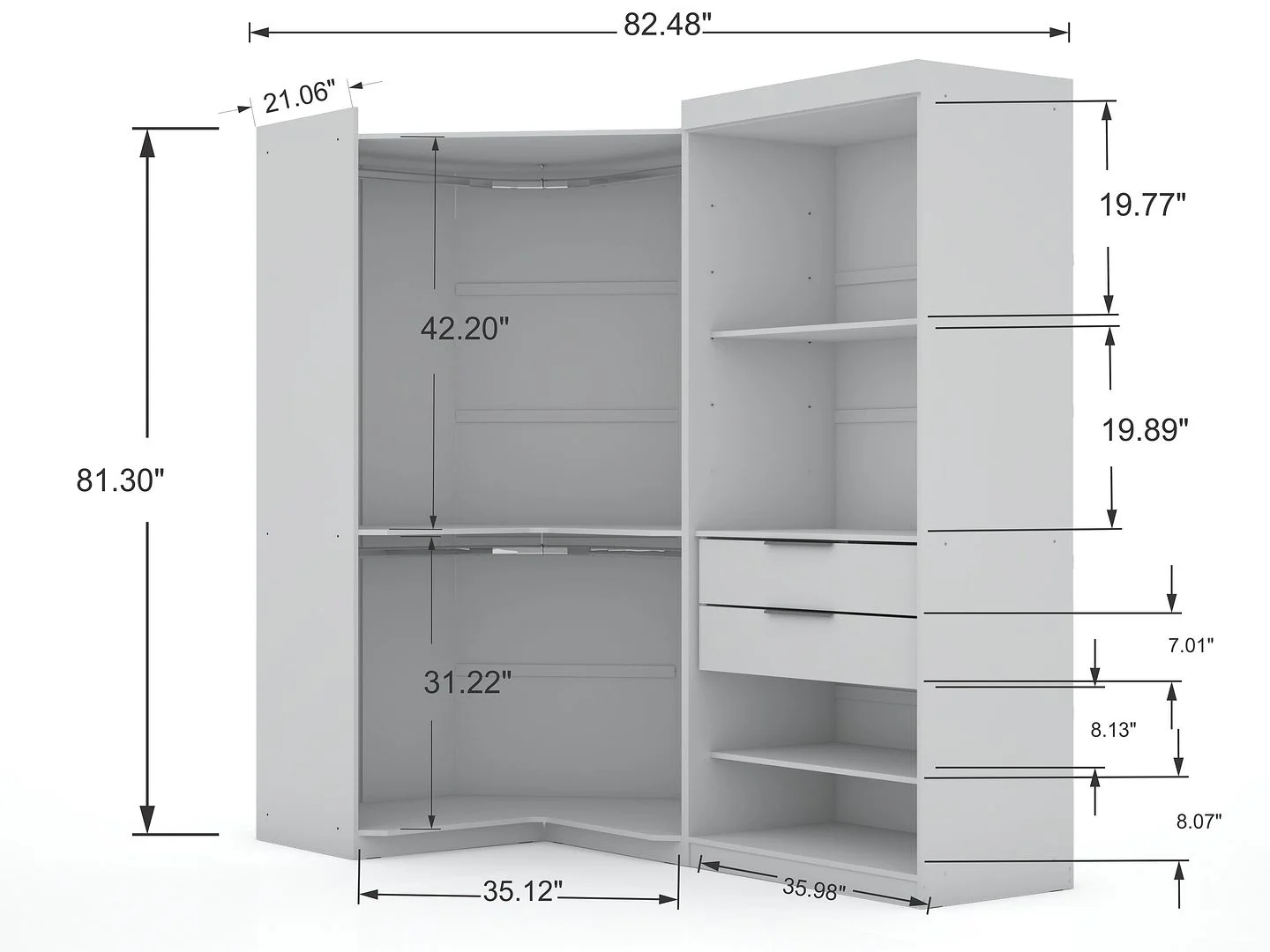 Mulberry Open 2 Sectional Modern Corner Wardrobe Closet with 2 Drawers- Set of 2 in White