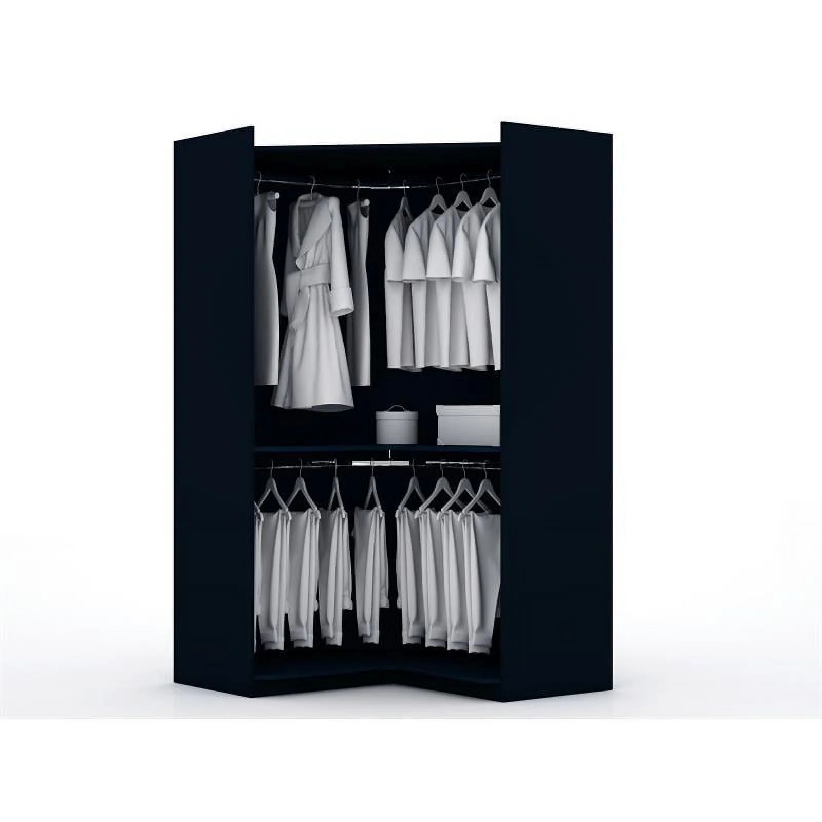 Atlin Designs Contemporary Wood Corner Wardrobe Closet in Midnight Blue